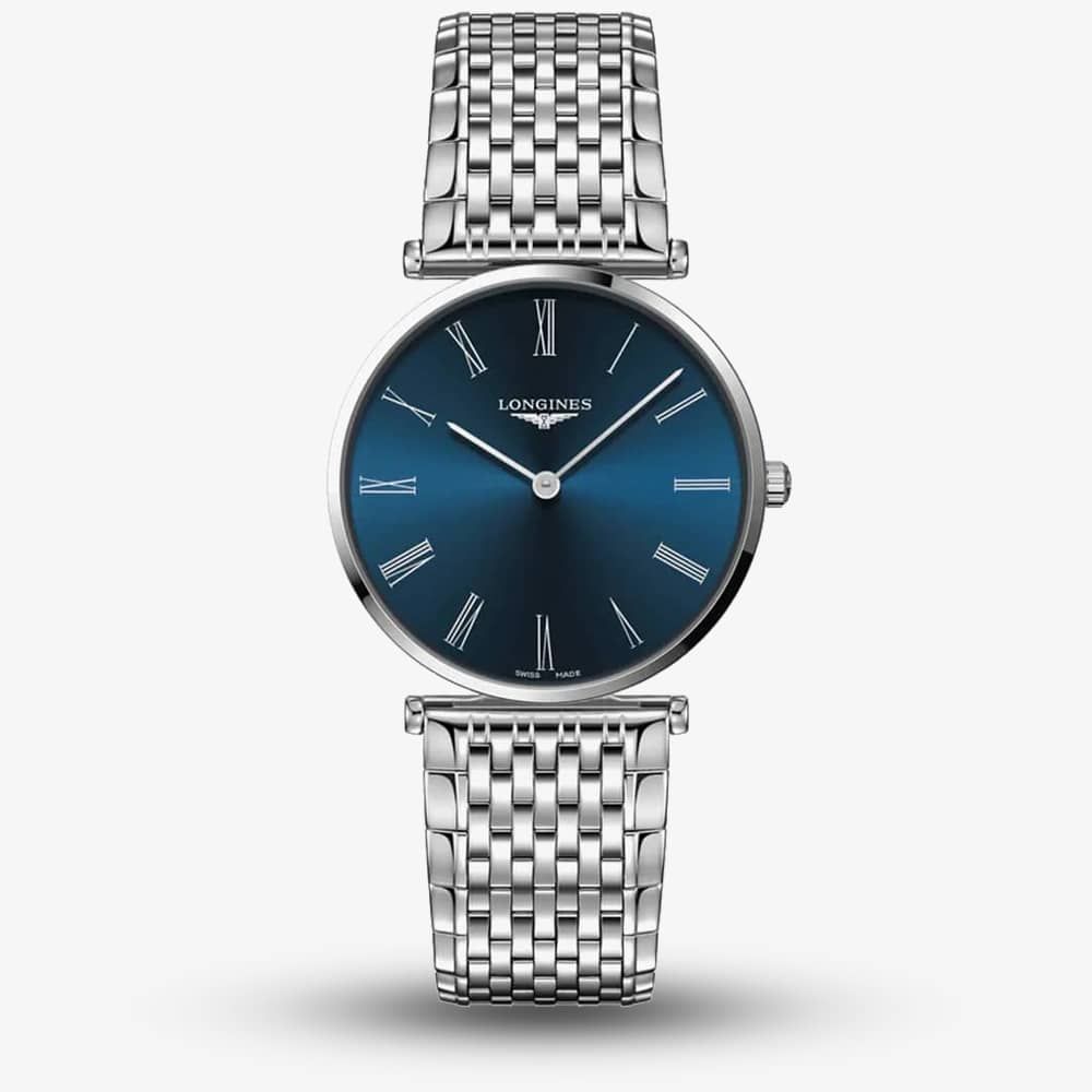 https://www.thbaker.co.uk/longines-ladies-la-grande-blue-dial-watch-l4-866-4-94-6122475Longines Ladies La Grande Blue Dial Watch L4.866.4.94.6https://www.thbaker.co.uk/media/catalog/product/2/4/24-75-284_grey.jpg9951200GBPOutOfStockLA GRANDE SS BW BLU DL RN The Longines L4.866.4.94.6 watch combines a 38mm round shaped stainless steel case and silver stainless steel bracelet with a. It has a blue analogue dial which is protected beneath scratch resistant sapphire crystal glass. Power is generated by the quartz movement. This model also has a water resistance of up to 30 metres.