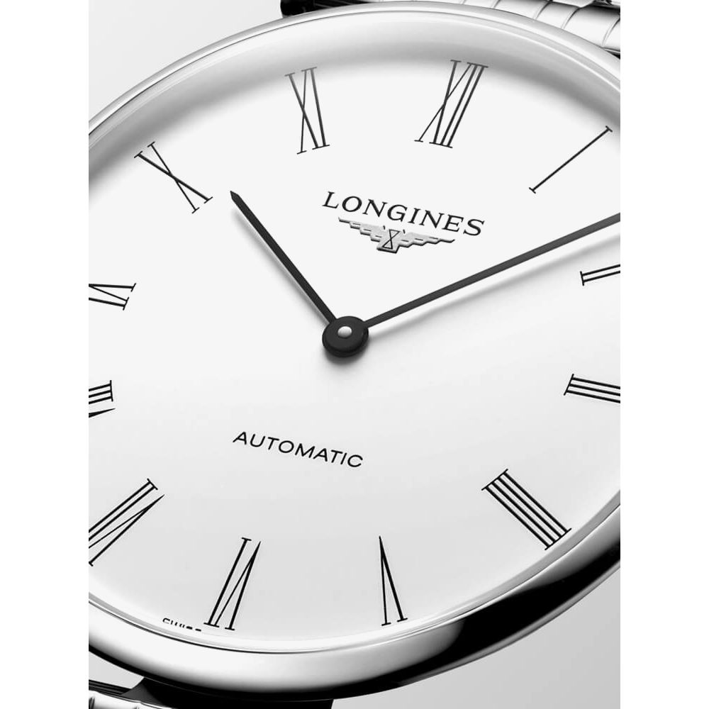 La Grande Classique de LONGINES, launched in 1992, helped build the brand's global reputation with its slim profile, sleek round case, and timeless elegance across various sizes, materials, and colours. This 38mm watch has a white analogue dial with Roman Numeral hour markers and black hands, which is protected beneath sapphire crystal glass. Powered by the automatic movement, this watch has self-winding mechanical movement beating at 28'800 vibrations per hour.