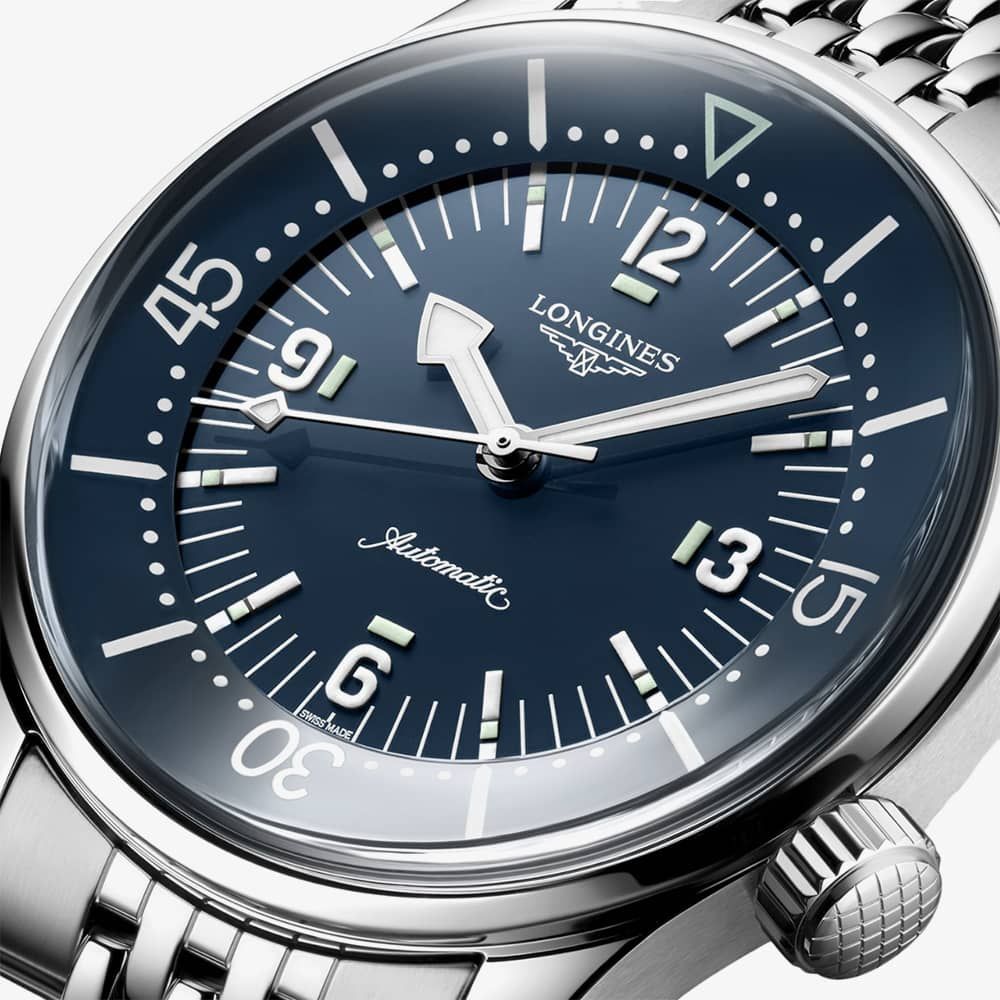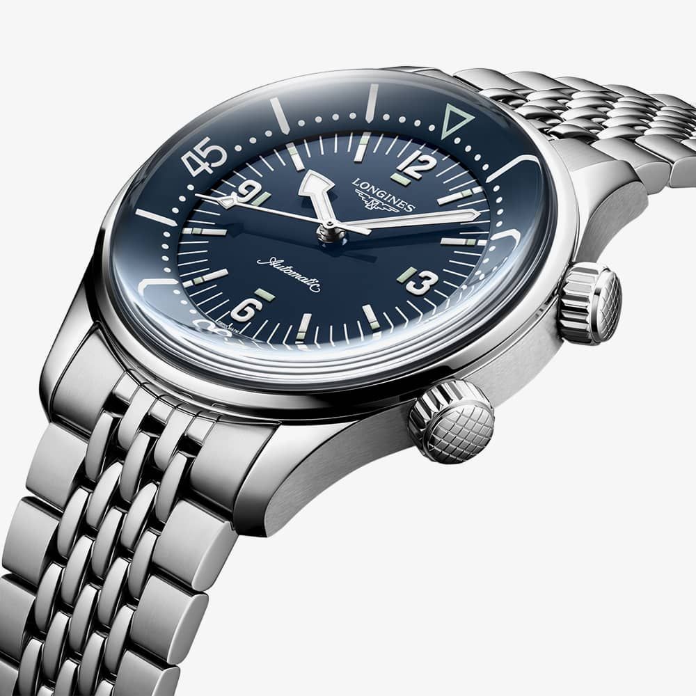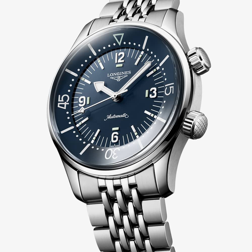 Dive into sophistication with this watch. Crafted for underwater enthusiasts, this timepiece boasts a 300-meter water resistance. The silver stainless steel case and bracelet perfectly frame the navy-blue dial, combining style with functionality.