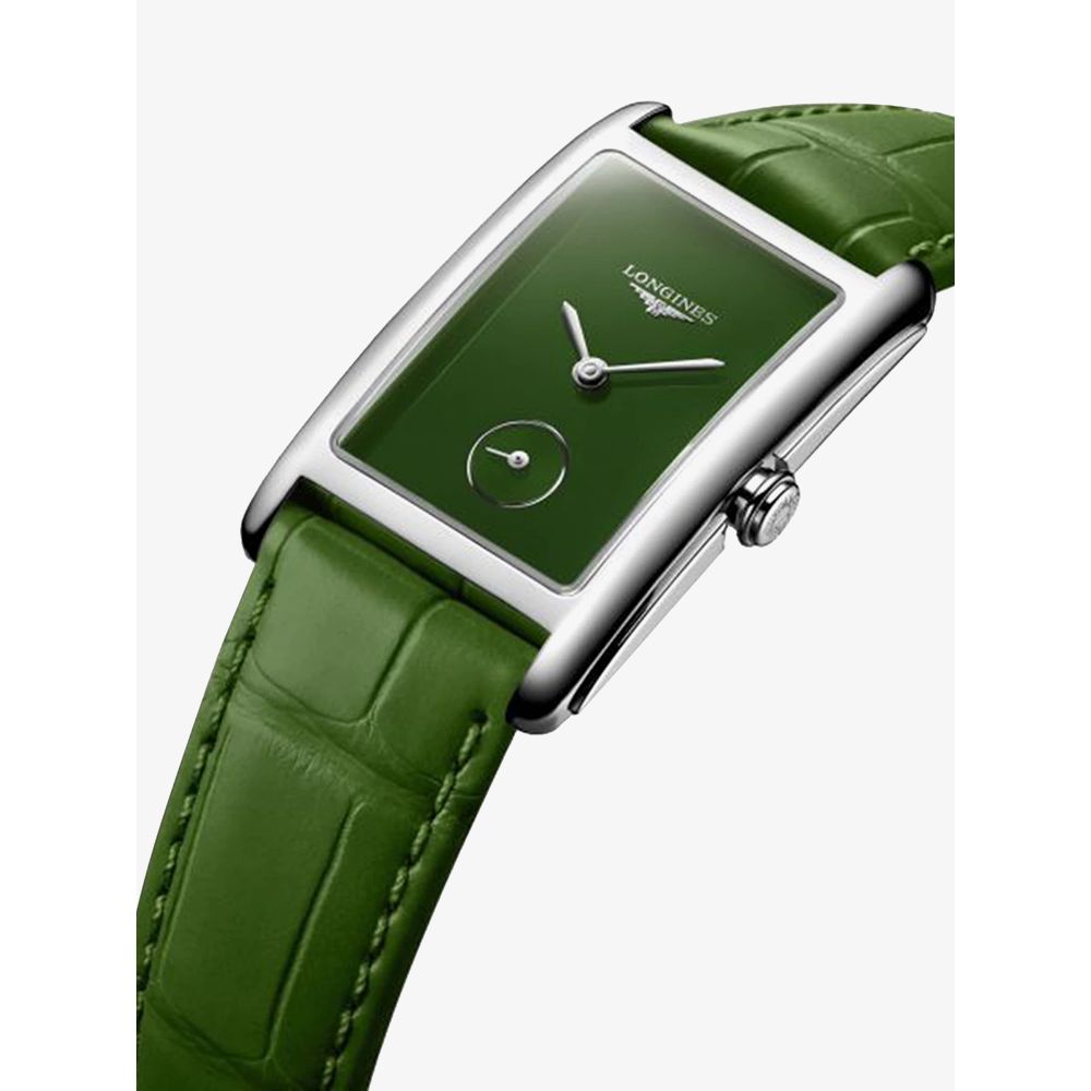 The Longines Mens Dolcevita 37mm Green Dial L5.512.4.60.2 watch combines a 37mm rectangular shaped stainless steel case and green leather strap with a traditional buckle. It has a green analogue dial with luminescent hands which is protected beneath scratch resistant sapphire crystal glass and has a layer of anti reflective coating. Power is generated by the automatic movement. This model also has a water resistance of up to 30 metres.