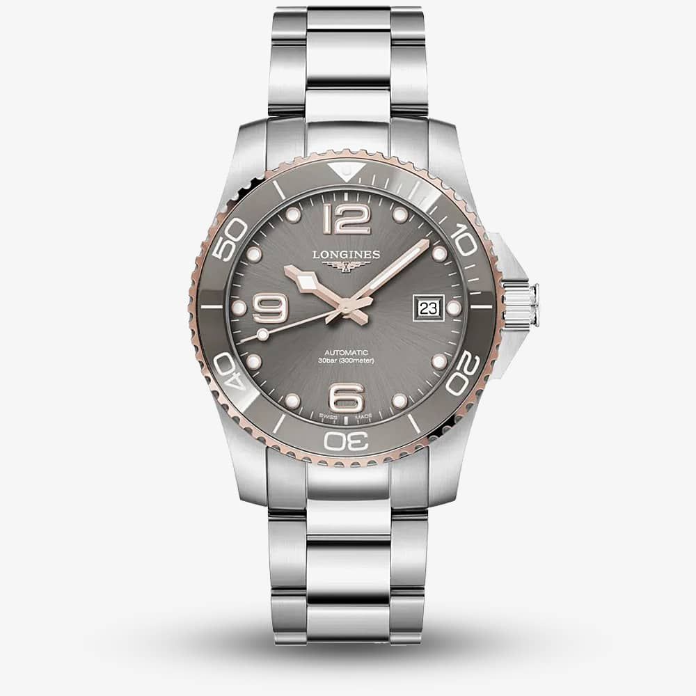 The Longines Mens Hydro Conquest Grey Dial L3.780.3.78.6 watch combines a 39mm round shaped stainless-steel case and silver stainless steel bracelet with a push button deployment clasp. It has a grey analogue dial which is protected beneath sapphire crystal glass. Power is generated by the automatic movement. This model also has a water resistance of up to 300 metres. Watch also has a power reserve of 72 hours.