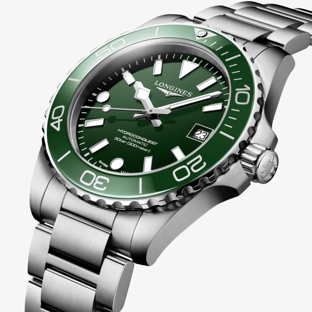 • 300 metre water resistance.Longineshttps://www.thbaker.co.uk/media/catalog/product/2/4/24-99-l3.779.4.06.6_longines_02.jpghttps://www.thbaker.co.uk/media/catalog/product/2/4/24-99-l3.779.4.06.6_longines_03.jpghttps://www.thbaker.co.uk/media/catalog/product/2/4/24-99-l3.779.4.06.6_longines_04.jpgcondition:Nodisc_no_stock:Noex_display:NoNoNoNoLonginesL3.779.4.06.6MensOfficial Longines Packaging5 Year Longines WarrantyLuxuryNoWatchSilverStainless Steel BraceletStainless SteelRound39.0mmAnalogueSapphire Crystal GlassGreenGreen300 metresAutomaticFold Over ClaspNo StoneNo Stone167.0gNoNoNoNoYesYesNo{"name":"v12_finance","text":"Or from \u00a337 per month","imageUrl":"https:\/\/www.thbaker.co.uk\/media\/nosto\/v12-finance.png"}247525158106Longines Mens Hydroconquest Automatic Green Dial Watch24-75-251581062026-03-26 00:00:000["\/Watches~|~\/watches\/~|~4","\/Watches\/Mens Watches~|~\/mens-watches\/~|~2","\/Watches\/Divers Watches~|~\/divers-watches\/~|~23","\/Watches\/Automatic Watches~|~\/automatic-watches\/~|~17","\/Watches\/Bracelet Watches~|~\/bracelet-watches\/~|~29","\/Watches\/Swiss Watches~|~\/swiss-watches\/~|~6","\/Brands A-Z\/Longines Watches~|~\/longines-watches\/~|~90","\/Brands A-Z\/Longines Watches\/Longines Mens~|~\/longines-mens-watches\/~|~1","\/Brands A-Z\/Longines Watches\/Longines Diving Collection\/Longines Hydroconquest~|~\/longines-hydroconquest-watches\/~|~1","\/Watches\/Luxury Watches~|~\/luxury-watches\/~|~14","\/Brands A-Z\/Longines Watches\/Longines Diving Collection~|~\/longines-diving-watches\/~|~7","\/Brands A-Z\/Longines Watches\/Longines Performance Collection~|~\/longines-performance-watches\/~|~8","\/Free Gift Card - When you spend \u00a3500+~|~\/free-gift-card\/~|~43","\/Watches\/Luxury Watches\/Mens Luxury Watches~|~\/mens-luxury-watches\/~|~2","\/Watches\/Colourful Watches~|~\/colourful-watches\/~|~20","\/Spend over \u00a31000 and receive a \u00a3100 gift card~|~\/gift-card-promotion\/~|~46","\/\u00a3150 Gold Gift Card (\u00a31000 - \u00a32000)~|~\/150-gold-gift-card\/~|~49","\/Free Gift With Purchase Products~|~\/free-gift-with-purchase-products\/~|~37","\/Watches\/Colourful Watches\/Green Watches~|~\/green-watches\/~|~1","\/Watches\/Waterproof Watches~|~\/waterproof-watches\/~|~28"]2026-03-26