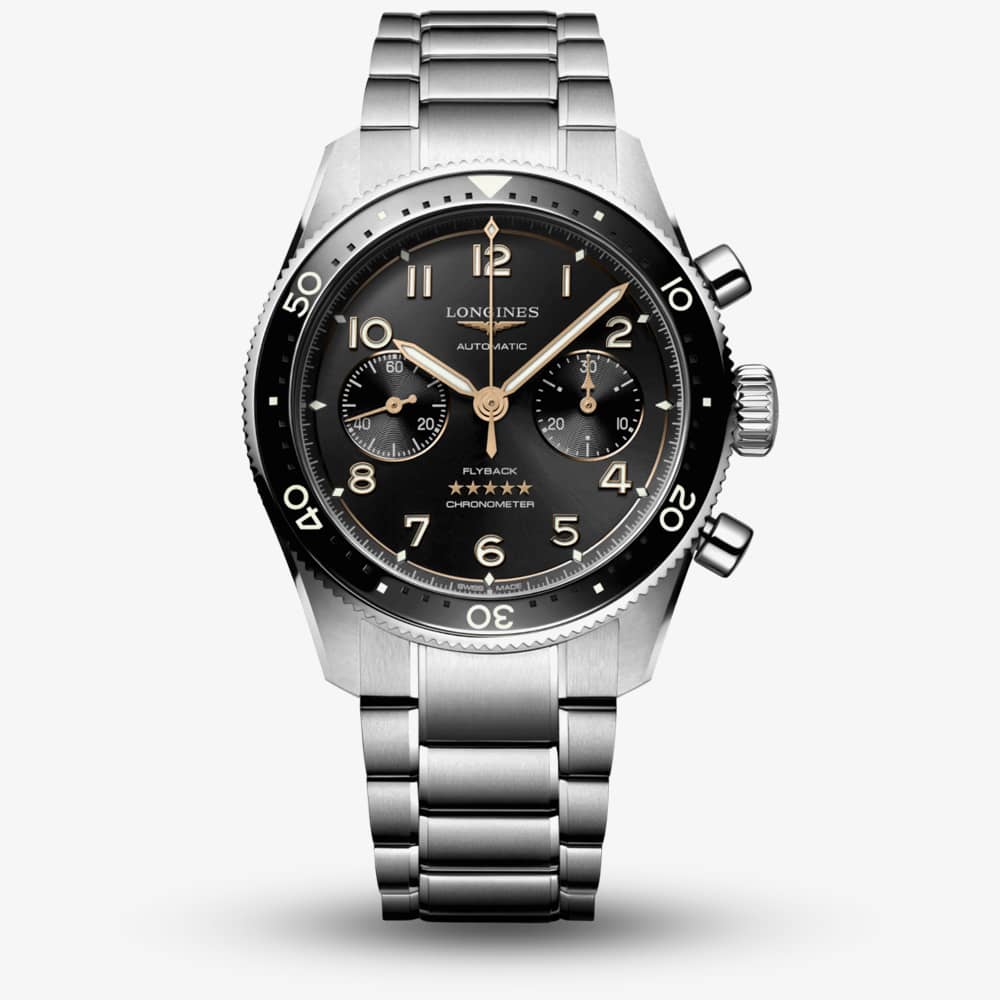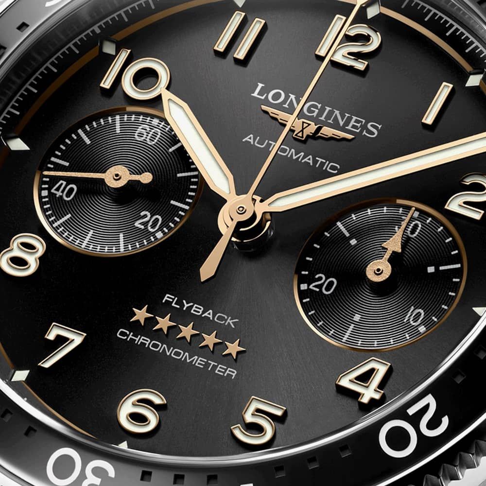 Experience precision and style with this Chronograph Flyback featuring a self-winding movement, 68-hour power reserve, and 28,800 vibrations per hour. Its bi-directional rotating bezel, screw-in crown, and 10-bar water resistance offer ultimate functionality. The scratch-resistant sapphire crystal with anti-reflective coating ensures clear visibility, while the sunray black dial with Swiss Super-LumiNova stands out in any light.