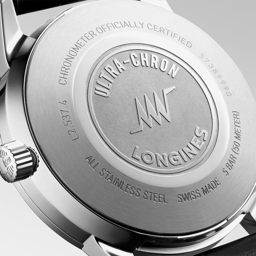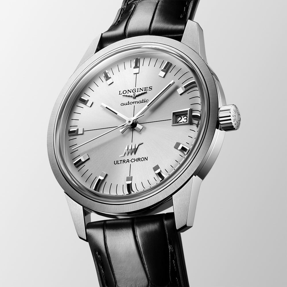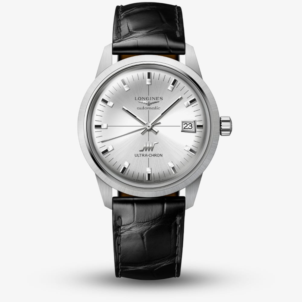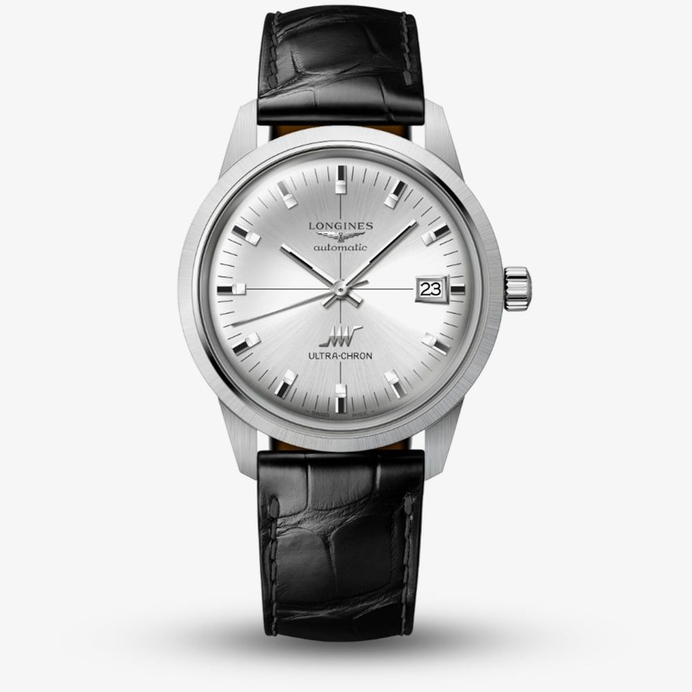 The Longines Ultra-Chron revives the bold spirit of the 1968 original, blending vintage diving aesthetics with modern precision. Its silver sunray dial radiates understated sophistication, complemented by a black alligator leather strap. At its core, the exclusive Longines calibre with silicon balance-spring delivers exceptional accuracy and magnetic resistance, earning chronometer certification. A contemporary tribute to an icon, the Ultra-Chron unites heritage design with cutting-edge performance.