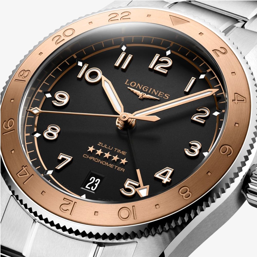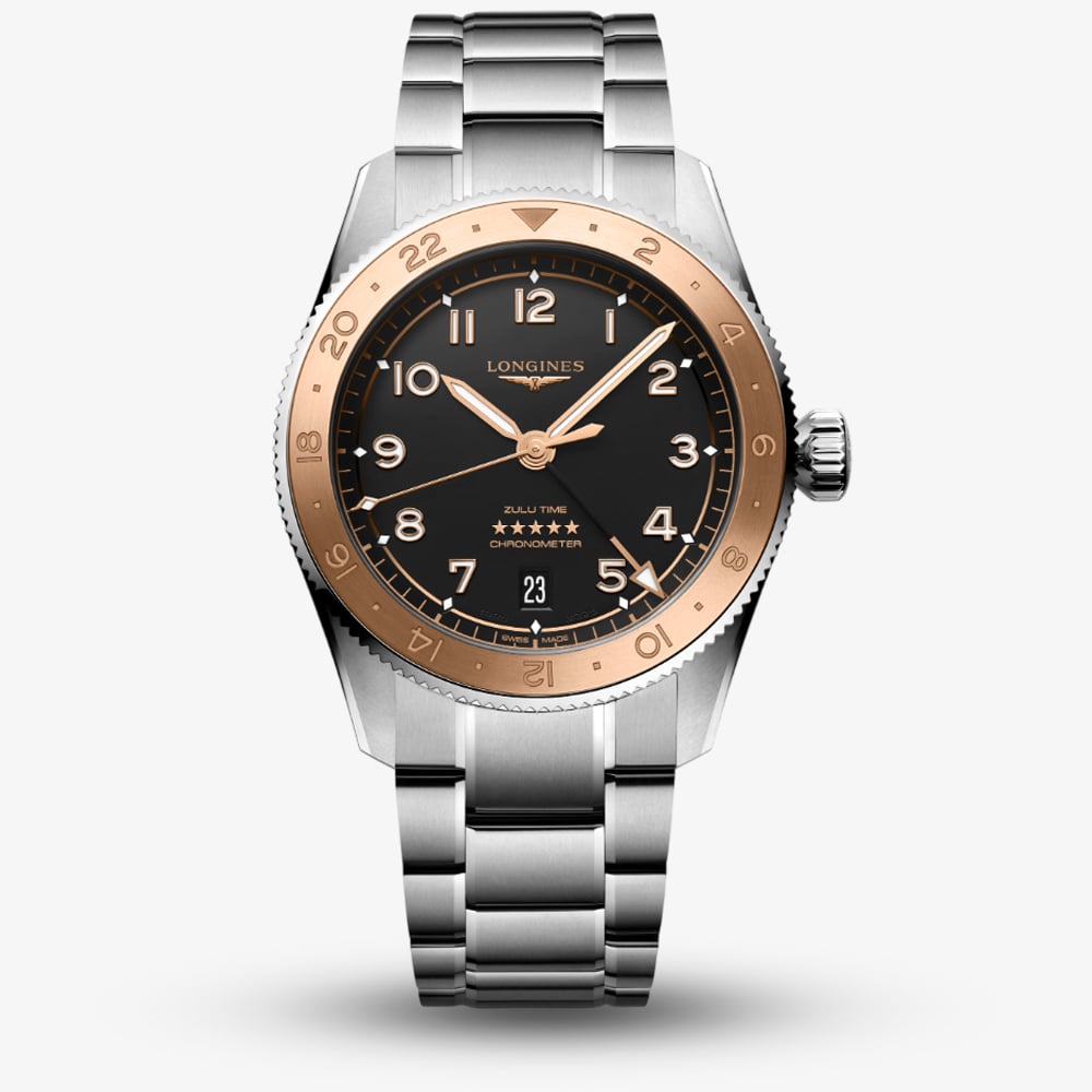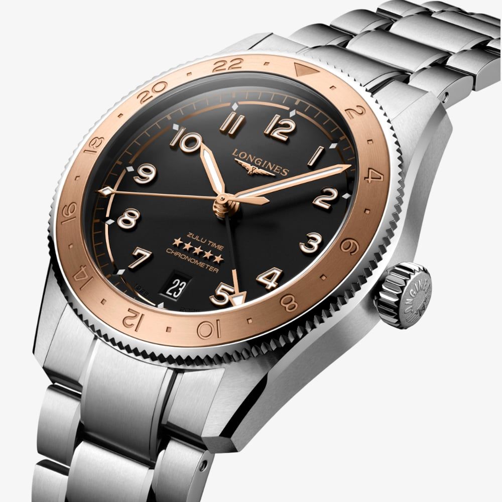 Combining timeless elegance with advanced functionality, this timepiece is designed for those who value heritage, precision, and style. Housed in a robust stainless steel case with a luxurious 18K rose gold bezel and crown, the watch exudes sophistication from every angle. The deep black dial features bold Arabic numerals along with a Zulu time function. Powered by a reliable automatic movement, this watch ensures high-accuracy performance and includes a practical date display positioned at 6 o’clock. Scratch-resistant sapphire crystal glass with anti-reflective properties protects the dial, while the robust stainless steel bracelet adds a touch of durability and elegance. Water-resistant up to 100 metres, this timepiece is equally suited for everyday wear or special occasions.