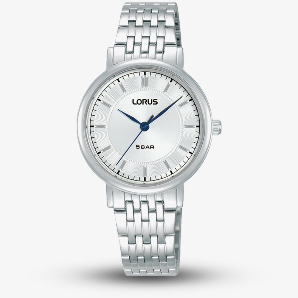 This elegant timepiece features a captivating sunray dial, enhanced by sleek hands and Arabic numerals for a polished touch. Its mirror-finished stainless-steel bracelet adds a luxurious feel and ensures a comfortable fit. Water resistant up to 50 metres, this watch combines timeless style with reliable durability.