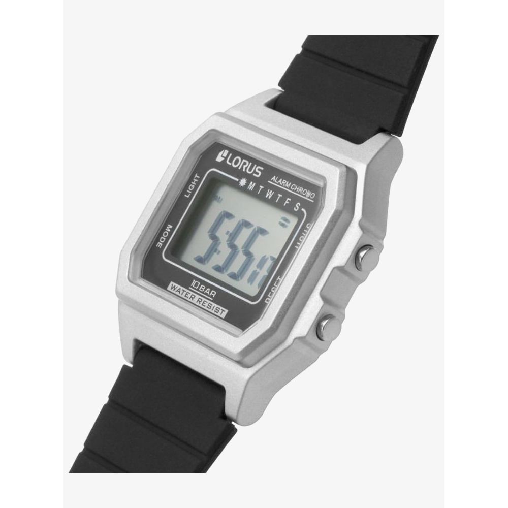 This practical Lorus model has been crafted with a silver plastic case & bezel that features a digital display and has been finished with a black silicone strap.