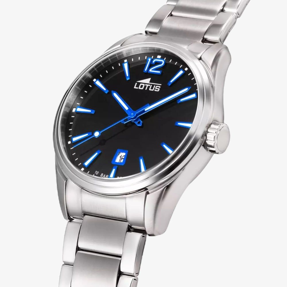 • 100 metre water resistance.Lotushttps://www.thbaker.co.uk/media/catalog/product/2/1/21-94-25157530_lotus_02.jpghttps://www.thbaker.co.uk/media/catalog/product/2/1/21-94-25157530_lotus_03.jpgcondition:Nodisc_no_stock:Noex_display:NoNoNoNo219425157530LotusL18692/6MensOfficial Lotus Packaging2 Year Lotus WarrantyClassicNoWatchSilverStainless Steel BraceletStainless SteelRound42.0mmAnalogueMineral Crystal GlassBlackBlack100 metresQuartzPush Button Deployment ClaspNo StoneNo Stone127.0gNoNoNoNoYesYesNo{"name":"Klarna","text":"3 payments of \u00a325","imageUrl":"https:\/\/www.thbaker.co.uk\/media\/nosto\/klarna.png"}Lotus Mens Classic Stainless Steel Black Dial Watch21-94-251575302026-04-08 00:00:000["\/Watches~|~\/watches\/~|~4","\/Watches\/Mens Watches~|~\/mens-watches\/~|~2","\/Seasonal\/Father's Day Gifts~|~\/fathers-day-gift-ideas\/~|~1","\/Watches\/Bracelet Watches~|~\/bracelet-watches\/~|~29","\/Watches\/Quartz Watches~|~\/quartz-watches\/~|~24","\/Watches\/Classic Watches~|~\/classic-watches\/~|~10","\/Watches\/Waterproof Watches~|~\/waterproof-watches\/~|~28","\/Brands A-Z\/Lotus Watches~|~\/lotus-watches\/~|~92"]2026-04-08