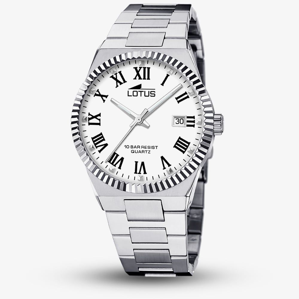 The Lotus Men’s Stainless Steel White Dial Watch L18835/4 is a classic and elegant timepiece perfect for any occasion. It features a polished stainless steel case and bracelet, paired with a crisp white dial and minimalist hour markers for a clean, timeless look. Designed for versatility and everyday wear, this watch offers both style and reliability.