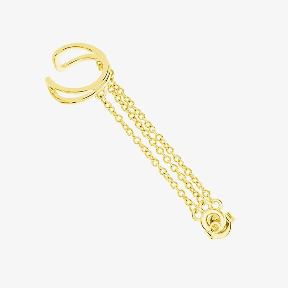 Introducing a stunning new design by Lucy Quartermaine, this Sterling Silver ear cuff with Gold Vermeil is both stylish and easy to wear. Weighing just 1.79 grams, it features a 3.5cm chain and a 0.8cm wide band, all adjustable by hand for a perfect fit. No piercing is needed—simply hook it over the top of your ear and slide it down to the helix for a secure and comfortable fit.