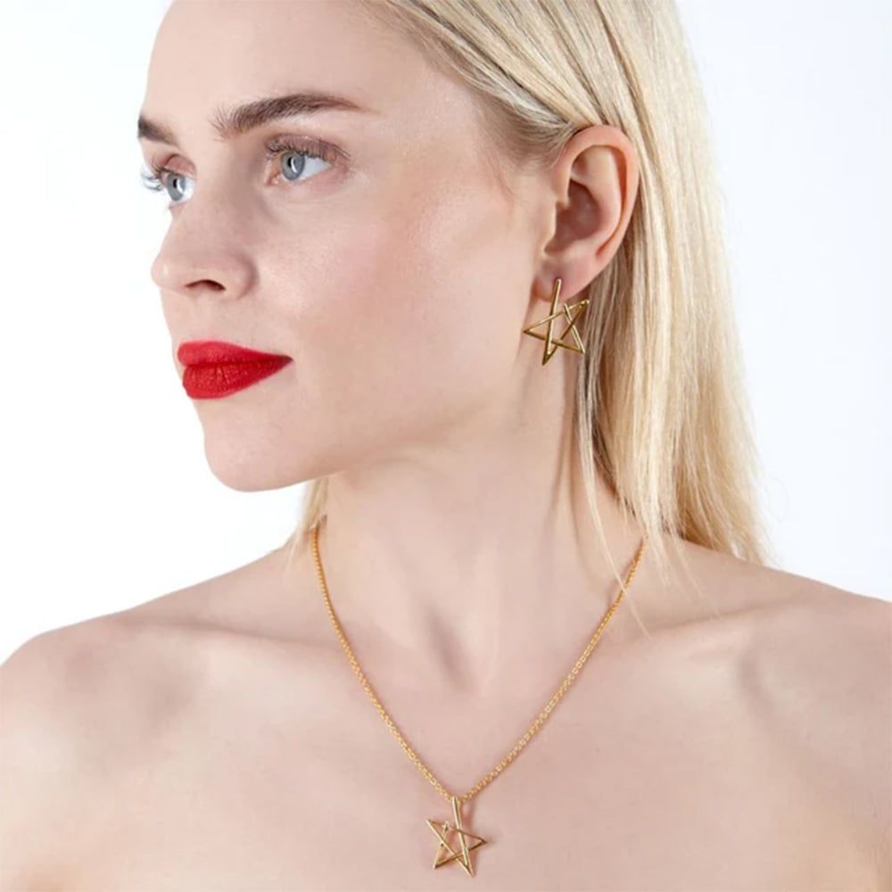 The Sol Star Pendant necklace is crafted from 925 sterling silver with a gold vermeil plating, offering a radiant, durable finish. Its striking star-shaped design measures 2.5cm by 3cm, catching light beautifully while adding a subtle, elegant touch to any outfit. Lightweight yet substantial at 6.1g, it is ideal for layering or wearing solo. The pendant also comes with an adjustable 16-18 inch chain and is hallmarked in the UK for authenticity.
