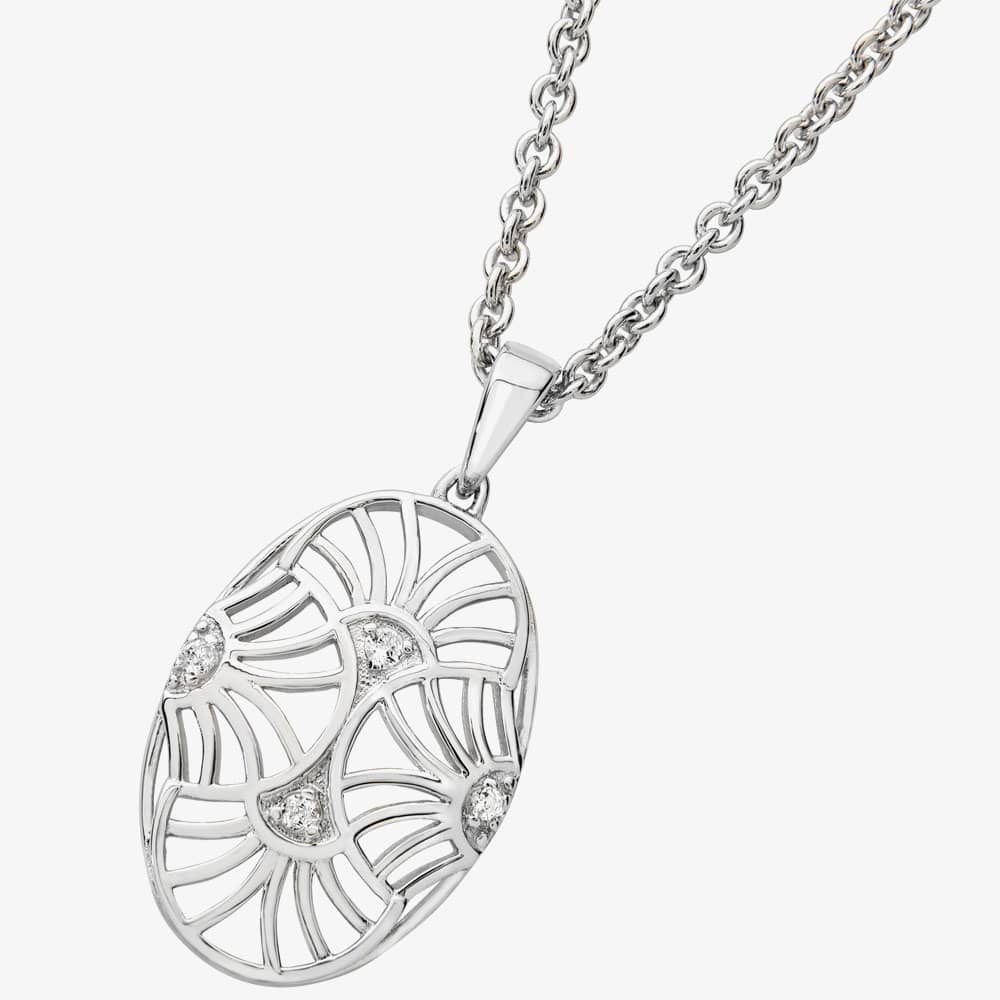 Lucy Quartermaine Silver Art Deco White Topaz Oval Pendant Necklace ADP7