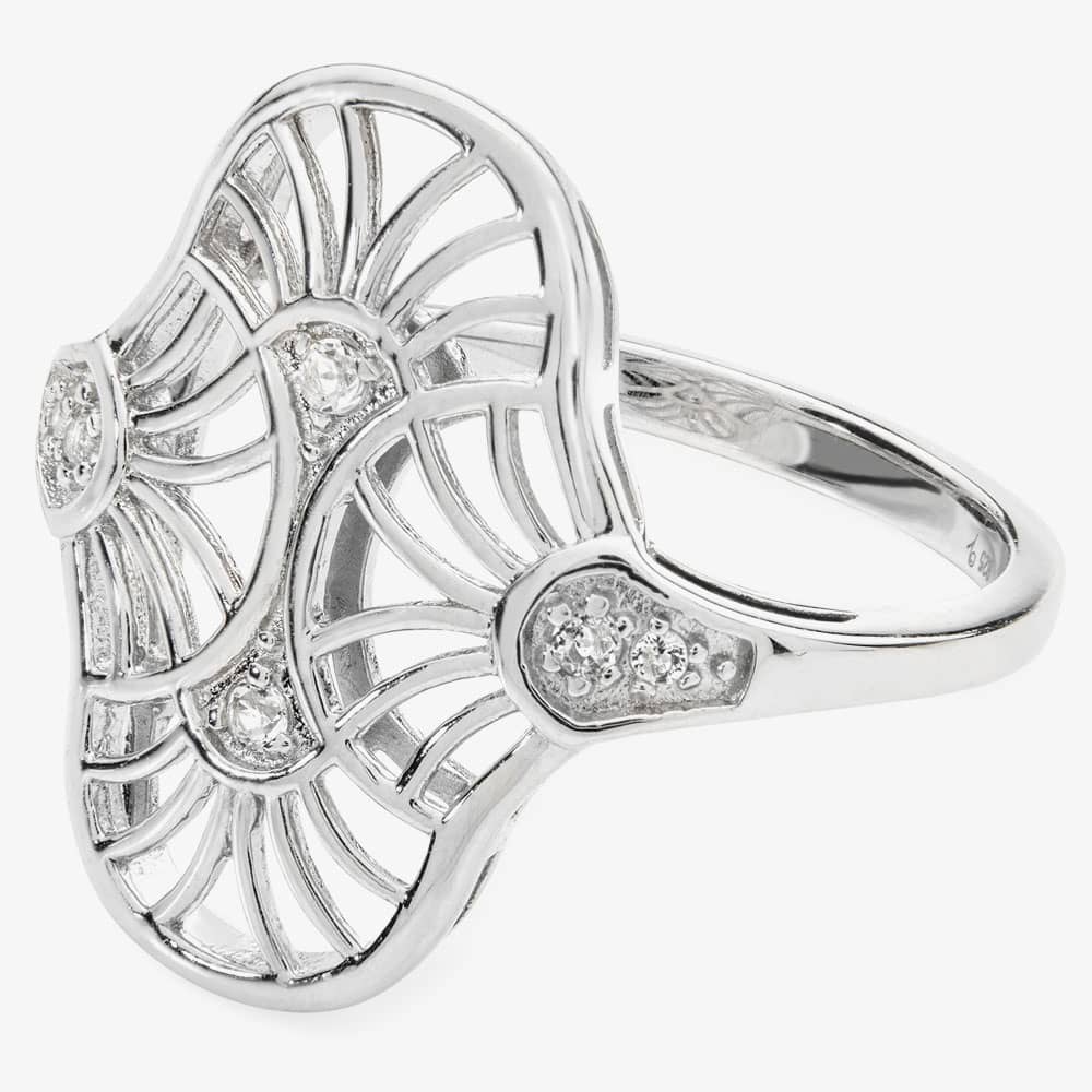 This refined single earring boasts a distinctive double post design, offering the flexibility to adorn multiple piercings for a chic and personalised appearance. Each earring is enriched with dazzling white topaz gemstones, providing a delightful touch of sparkle.