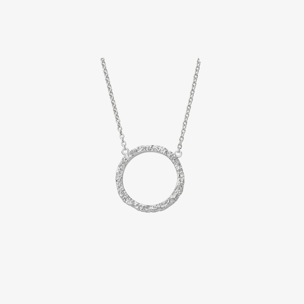 Lightweight and luxurious, the Lucy Quartermaine Hula necklace has a textured hoop design that catches the light from every angle to give a subtle sparkle. Crafted from sterling silver with rhodium plating, this necklet can be worn alone for the minimal look or layered with other pieces for a personalised look. With an adjustable chain length and secure lobster clasp, the Hula necklace is the perfect choice for all day wear.