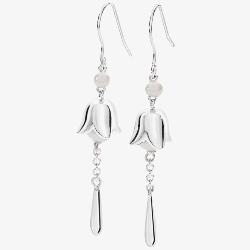 Lucy Quartermaine Silver Lily Of The Valley Freshwater Pearl Dropper Earrings RER3
