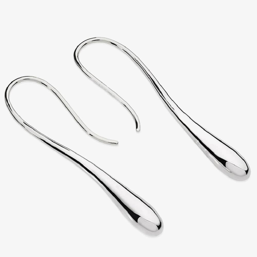 These earrings feature a solid drop design with a chic rhodium overlay, adding a touch of sophistication to any ensemble. The shepherd's crook fastening ensures a secure and stylish closure.
