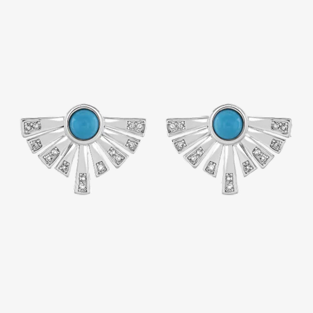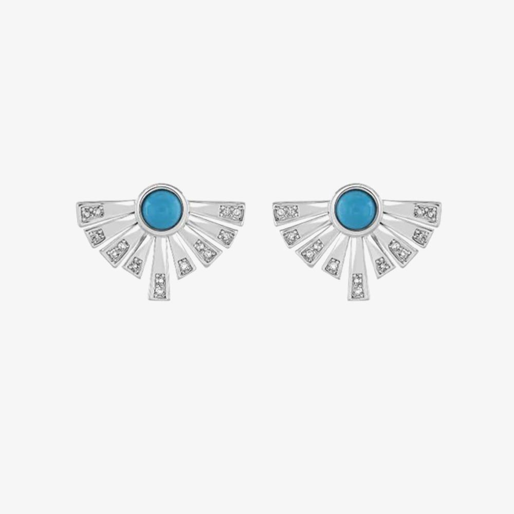 Crafted in sterling silver, each earring features a vibrant turquoise stone set in a design inspired by Egyptian motifs, creating a bold yet refined statement. Perfect for everyday wear or special occasions, these studs combine rich colour with timeless style, making them a versatile addition to any jewellery collection.