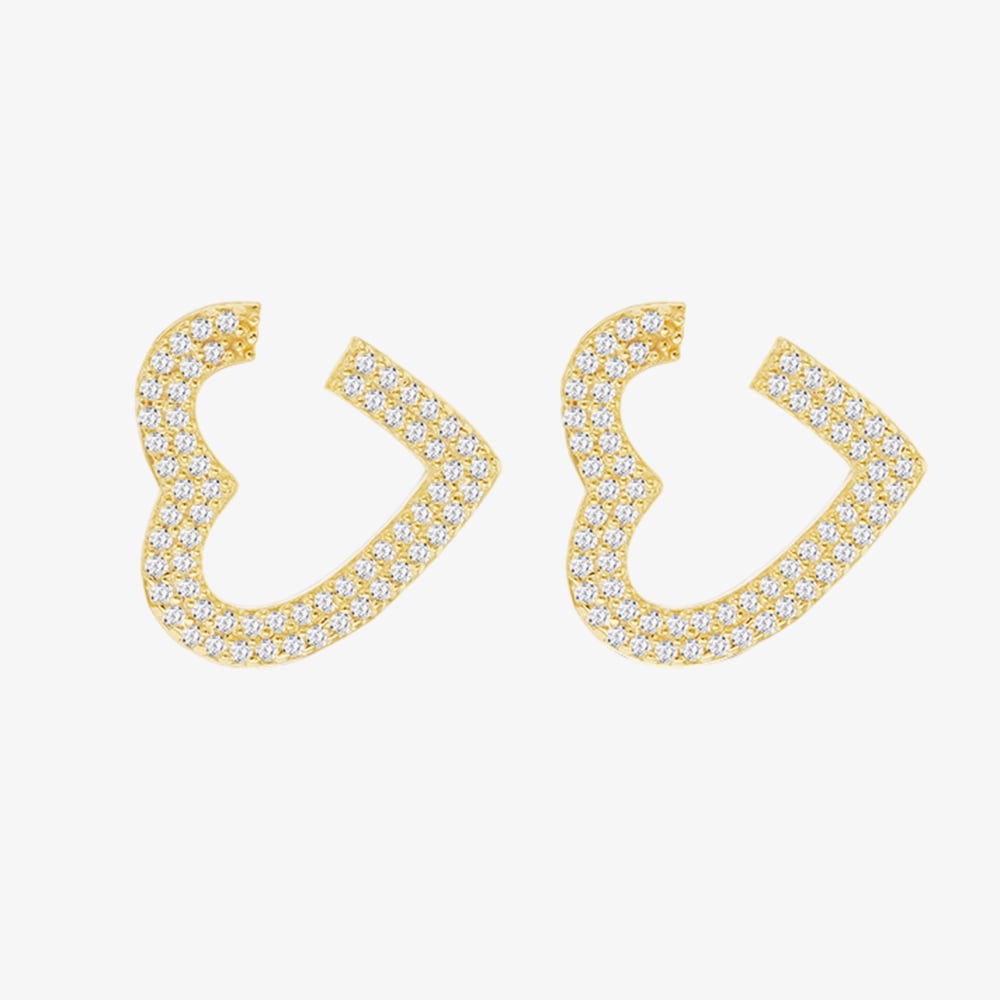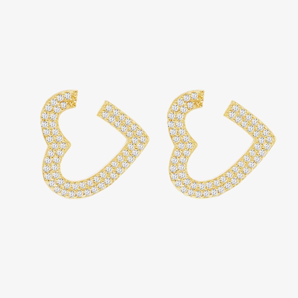 The Sterling Silver Yellow Gold Plated Cubic Zirconia Open Heart Studs are a charming and elegant accessory. Crafted from sterling silver and plated with yellow gold, these stud earrings feature a beautiful open-heart design adorned with sparkling cubic zirconia stones.