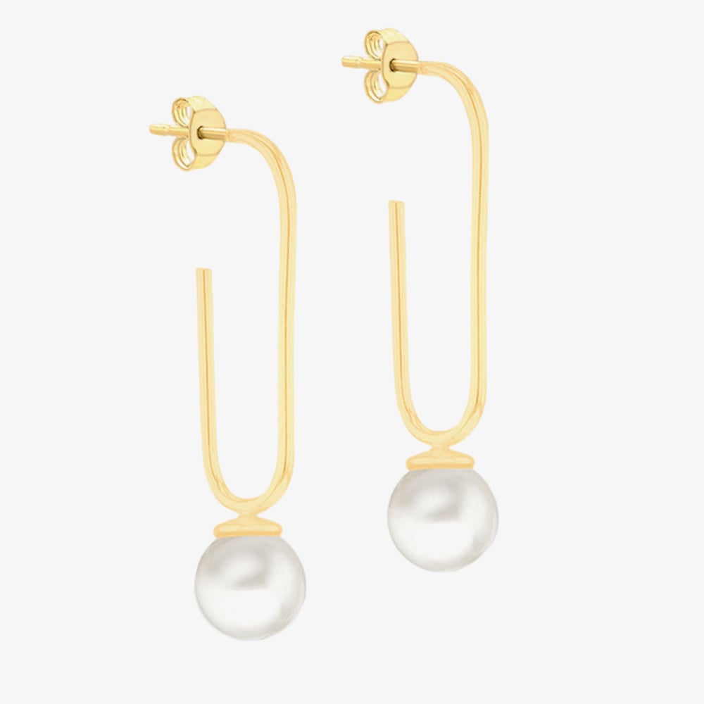 These sterling silver dropper earrings, plated in gold, feature elegant freshwater pearls that add a touch of classic sophistication. The modern paperclip design offers a sleek, contemporary look, while the pearls bring timeless elegance.