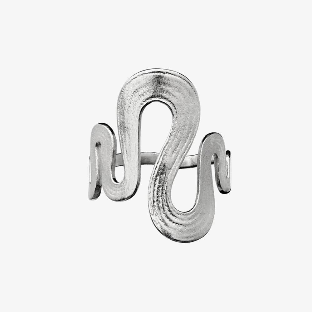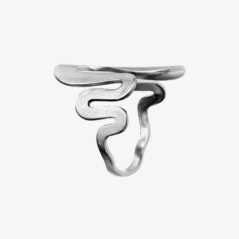 This ring is a voluminous statement piece that effortlessly infuses a cool vibe into your ensemble. The ring's organic design mimics the gentle waves of the ocean, creating a stylish and dynamic accessory that complements your fashion-forward look with ease. This ring is crafted from recycled sterling silver (925).