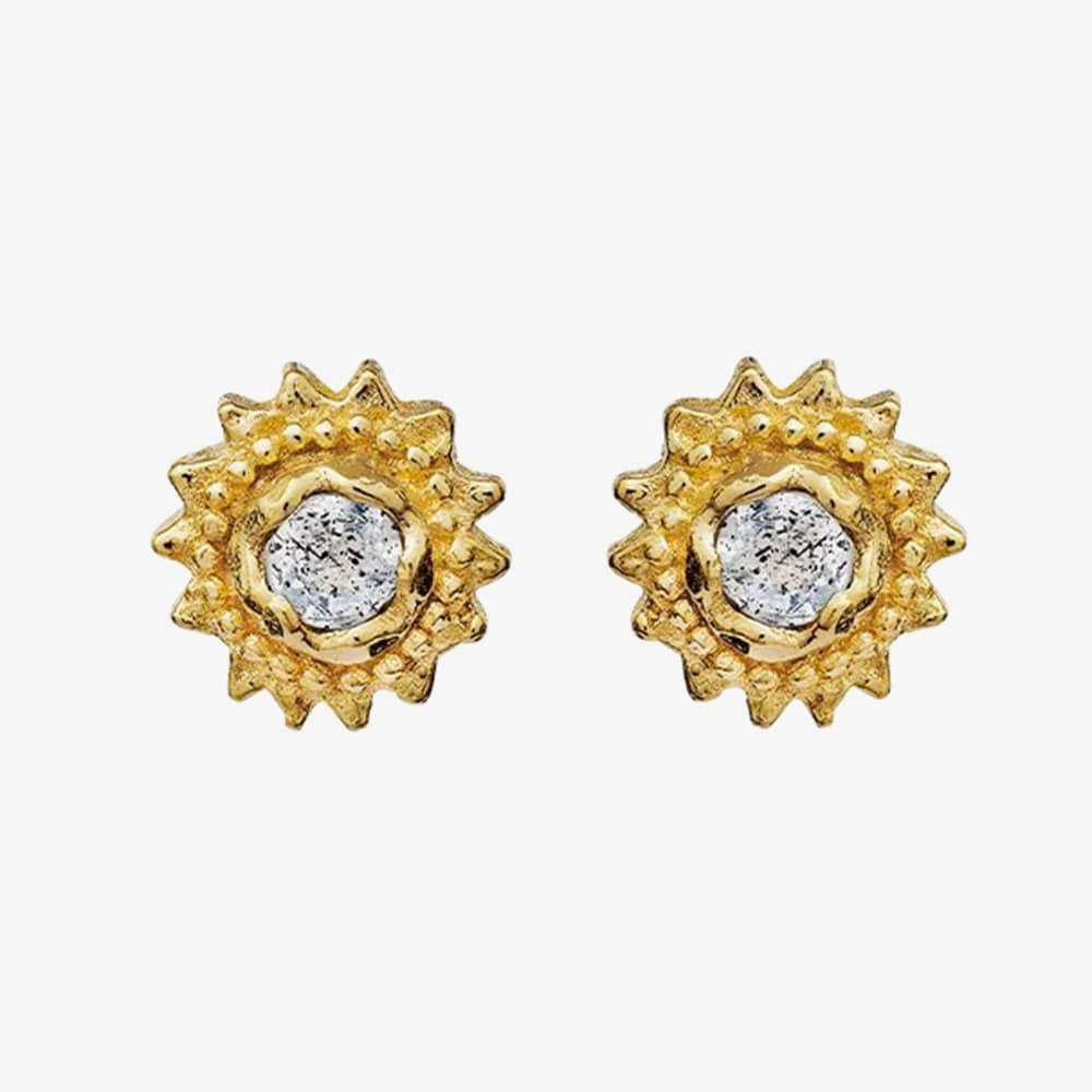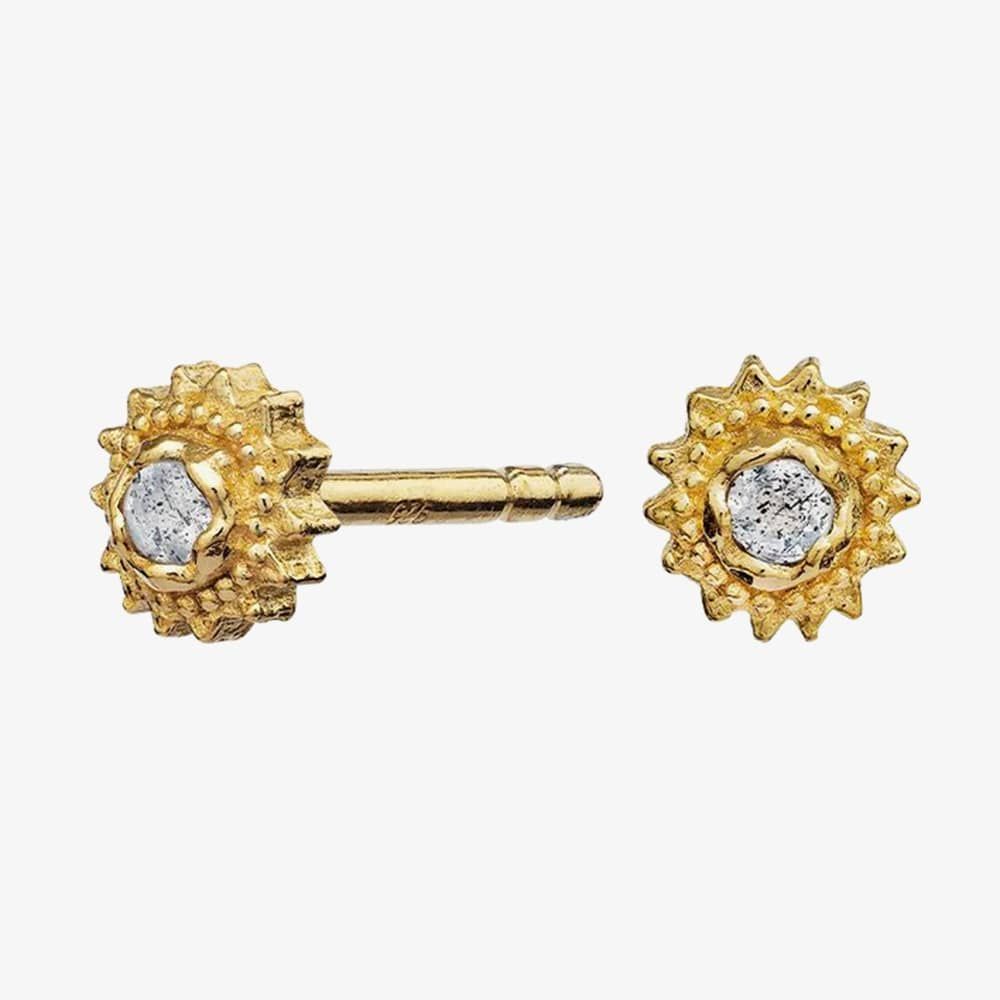This charming small earstick is adorned with exquisite details and cantered around a captivating labradorite stone, adding a touch of elegance to any ensemble. These earrings are crafted from recycled sterling silver (925) with 18 carat gold plating.