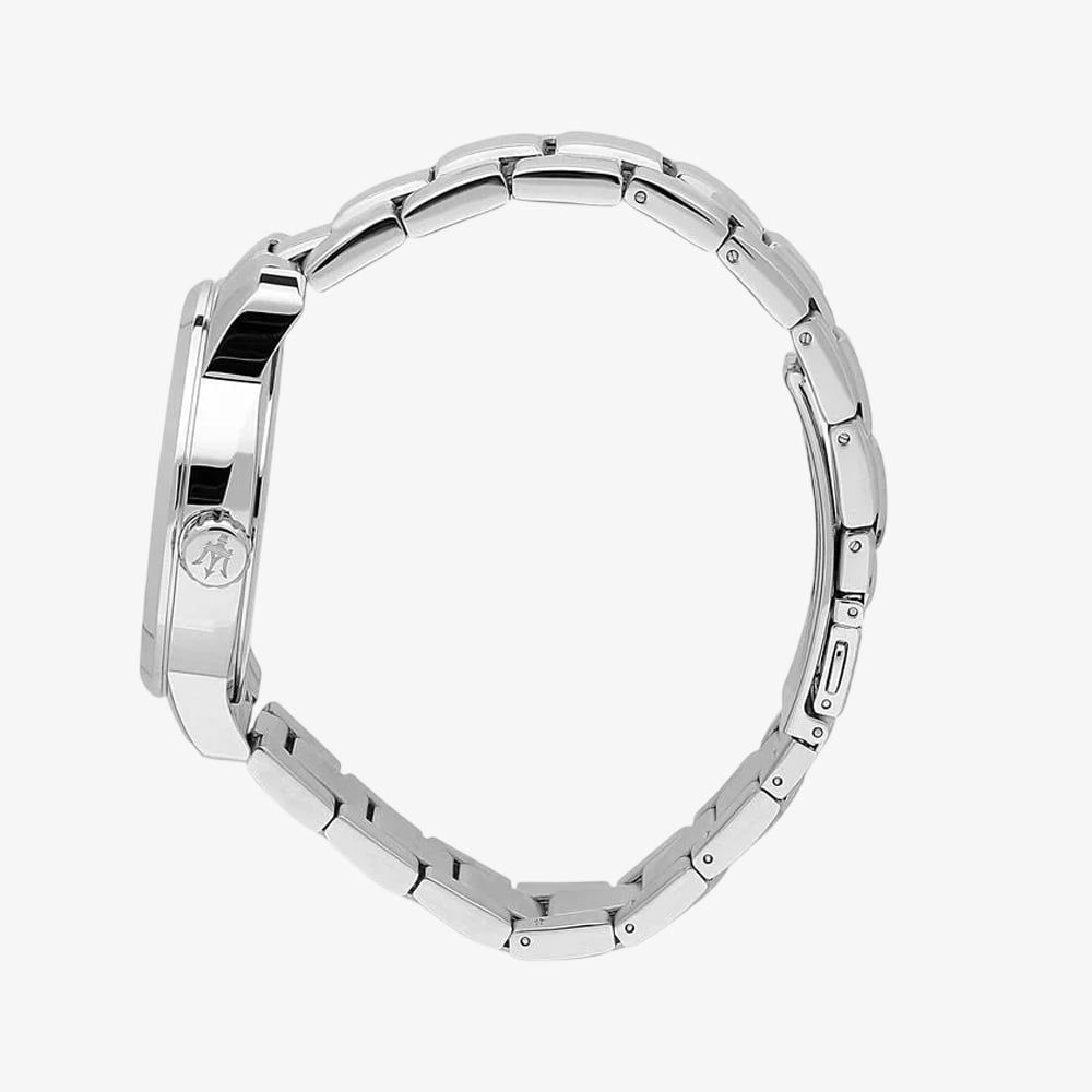 A bold and sophisticated chronograph timepiece that embodies the spirit of Italian automotive excellence.The watch features a captivating blue dial, providing a dynamic backdrop for the chronograph subdials and luminous hands. mThree subdials offer precise timekeeping, allowing incredibly accurate timekeeping. Crafted from high-quality stainless steel, the case and bracelet ensure durability and a polished aesthetic. The robust stainless steel bracelet provides a comfortable and secure fit, enhancing the watch's sporty yet refined look. This watch also comes with a stylish Maserati stainless steel bracelet to complete the gift set.