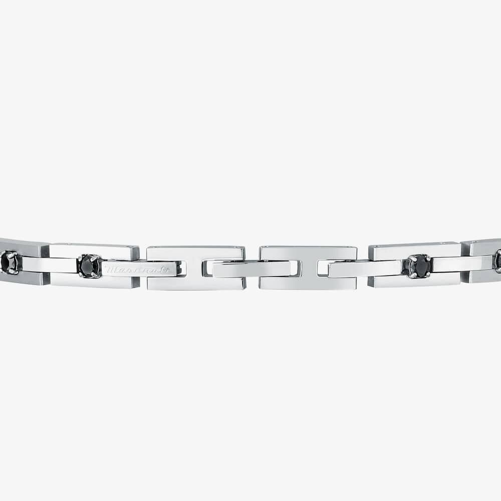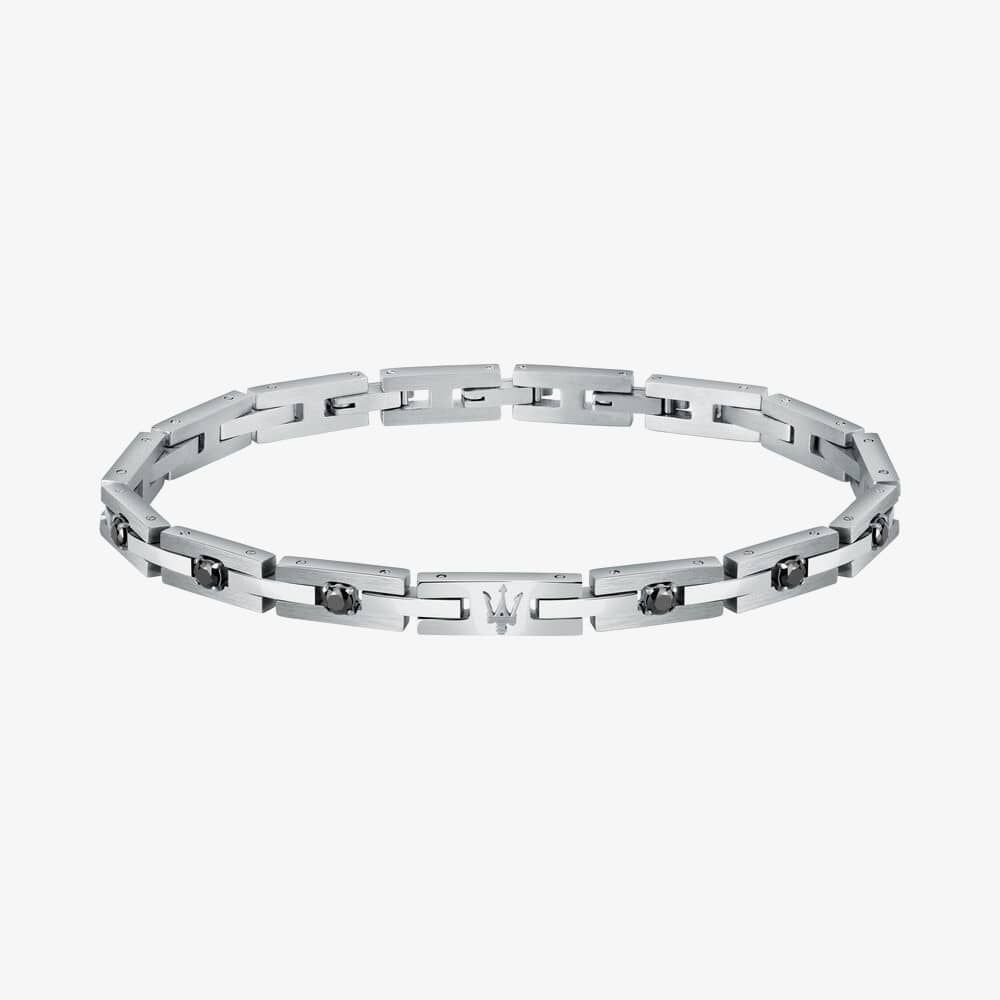 Crafted with stainless steel, it exudes strength and durability while the black crystal elements add a touch of modern elegance. Elevate your look and add a subtle hint of luxury to your wrist.