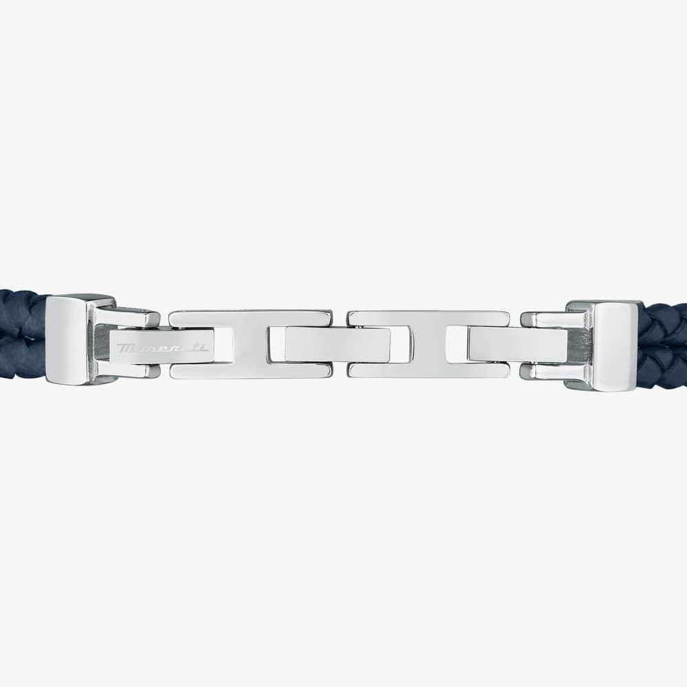 Crafted from recycled leather in a rich shade of deep blue, this bracelet exudes sophistication and eco-conscious elegance. Its stainless-steel clasp and intricate detailing provide durability and a contemporary edge, while the rose gold accents add a touch of luxury.