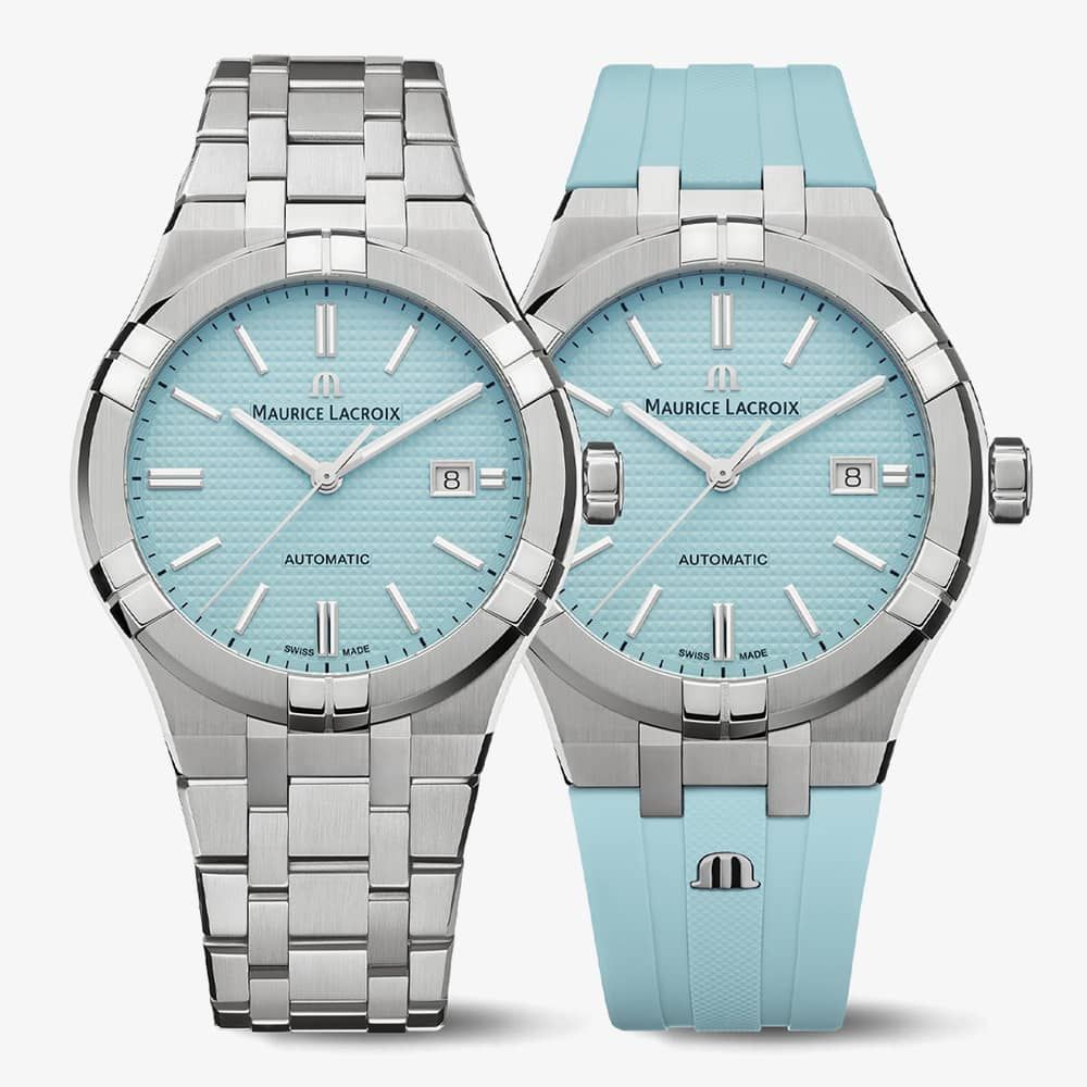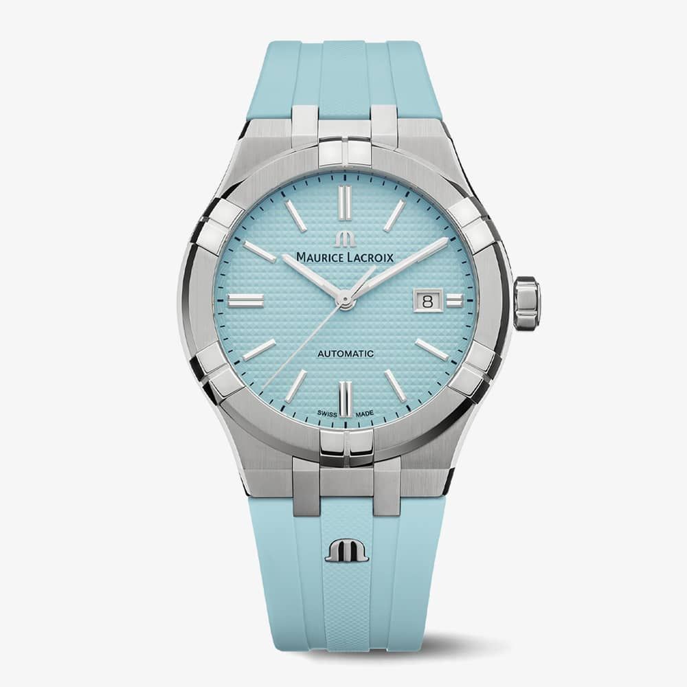 Inspired by the iconic Calypso of the '90s, the AIKON has established itself as a modern icon. Its design language embraces bold, urban styling and masterfully plays with contrasts. Like all of our watches, the AIKON combines Swiss craftsmanship with high perceived value. This watch features a baby blue dial and comes with an additional blue rubber strap.