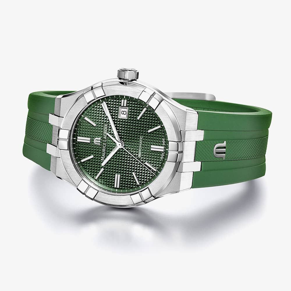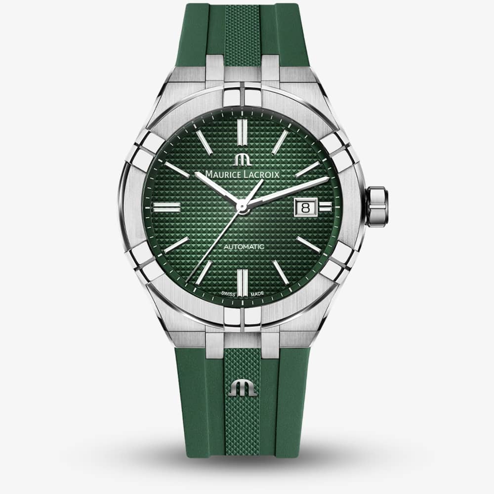 Urban-inspired contemporary aesthetics, ergonomic design, and a mechanical heart make this the perfect companion for city life. The AIKON Automatic, featuring a green rubber strap and green dial, makes a bold statement with its playful use of contrasts and shapes.