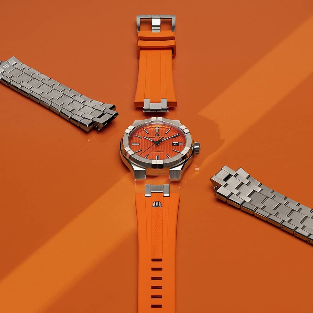 Inspired by the iconic Calypso of the '90s, the AIKON has established itself as a modern icon. Its design language embraces bold, urban styling and masterfully plays with contrasts. Like all of our watches, the AIKON combines Swiss craftsmanship with high perceived value. This watch features a orange dial and comes with an additional orange rubber strap.