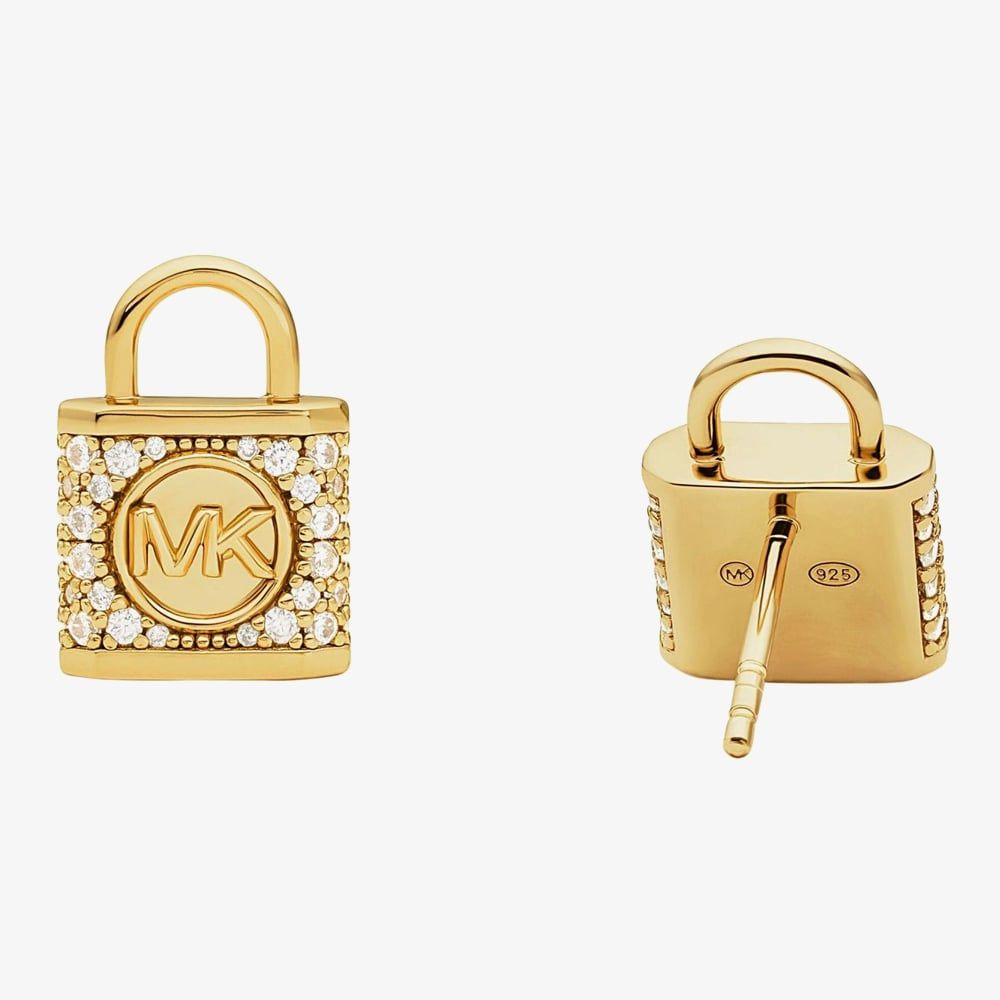 The Michael Kors Logo Padlock Earrings MKC1628AN710 have been crafted in 14ct yellow gold-plated sterling silver and feature an eye-catching padlock motif with the iconic MK logo and set with sparkling cubic zirconia stones. These earrings are completed with a post and butterfly back fastening.