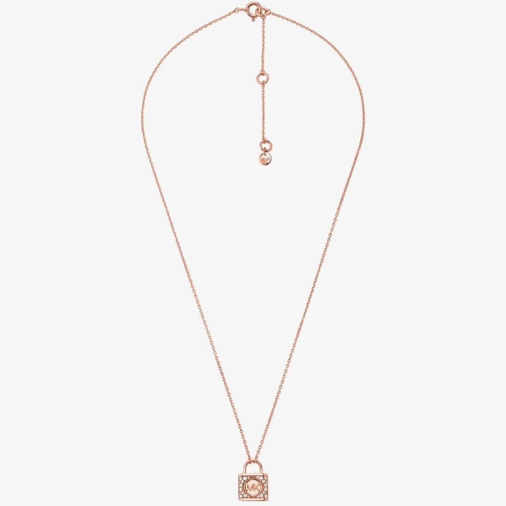 Michael Kors 14ct Rose Gold Plated Cubic Zirconia Logo Padlock Necklace MKC1629AN791 Michael Kors 14ct Rose Gold Plated Cubic Zirconia Logo Padlock Necklace MKC1629AN791