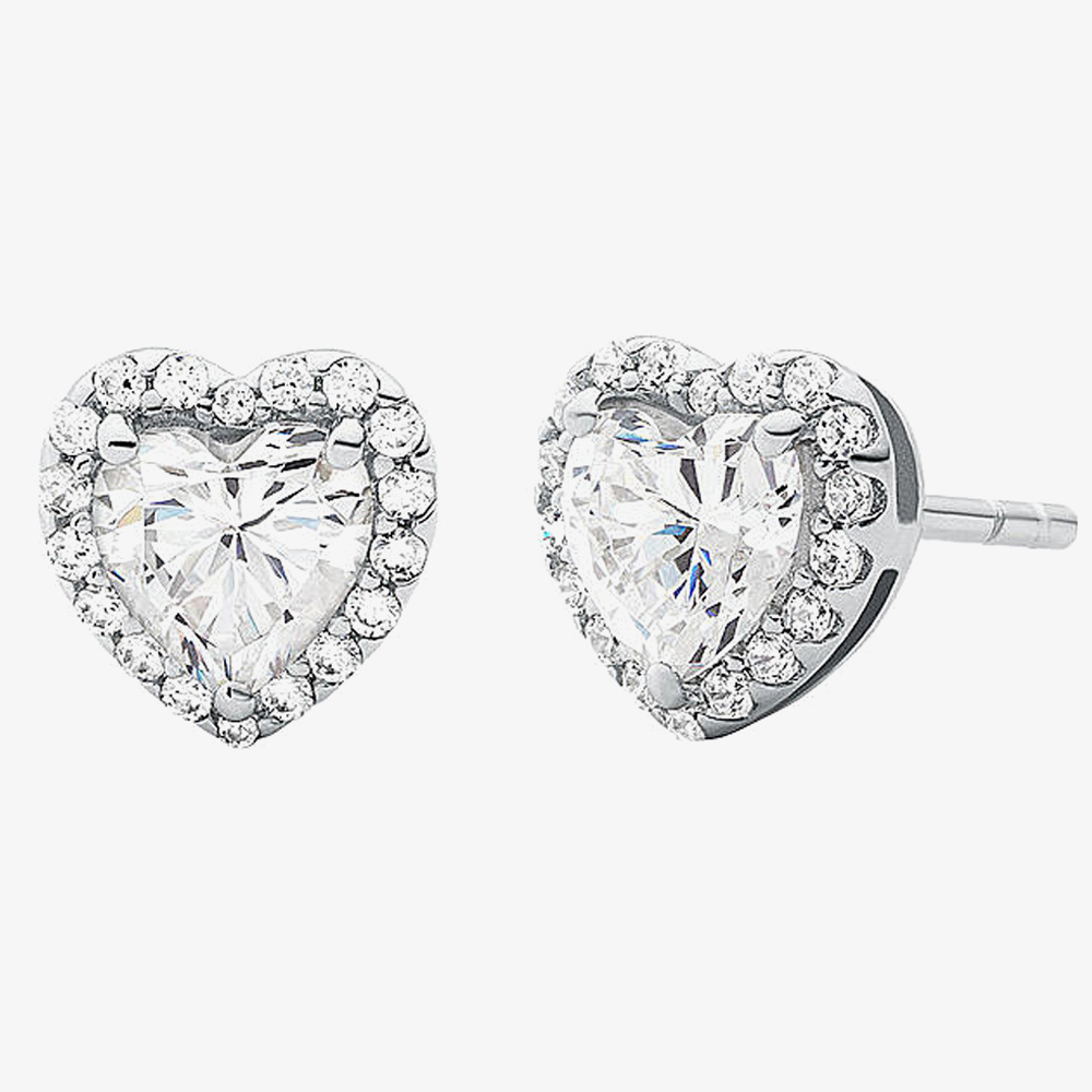 A beautiful & delicate pair of silver heart shape clutser style stud earrings crafted with sparkling cubic zirconia stones. The perfect addition to your collection.