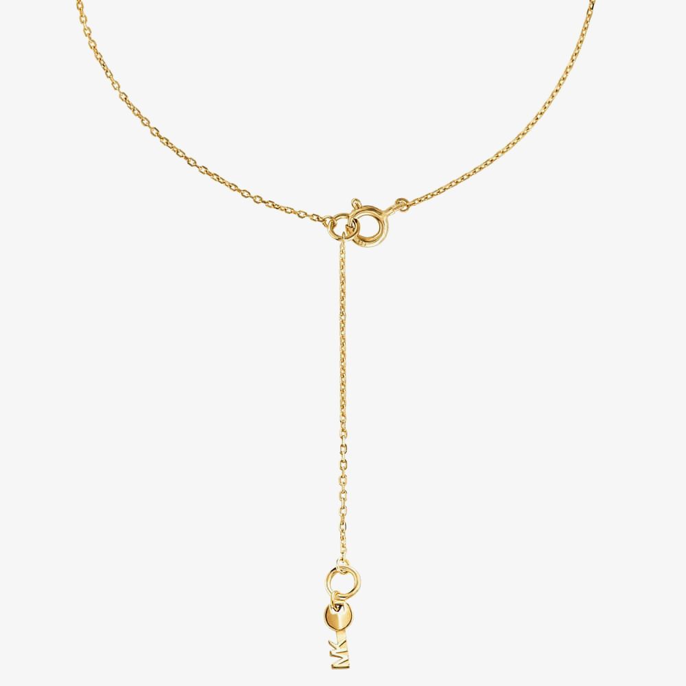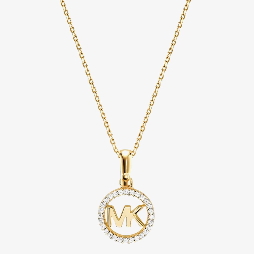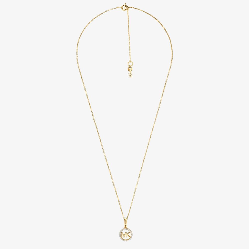This beautifully crafted 14ct gold logo necklace is the perfect addition to your expanding Michael Kors collection. Part of the Custom Kors range, this stunning necklace features a fixed logo charm with cubic zirconia pavé elements. Wear individually or pair with similar items from the collection to complete your look.