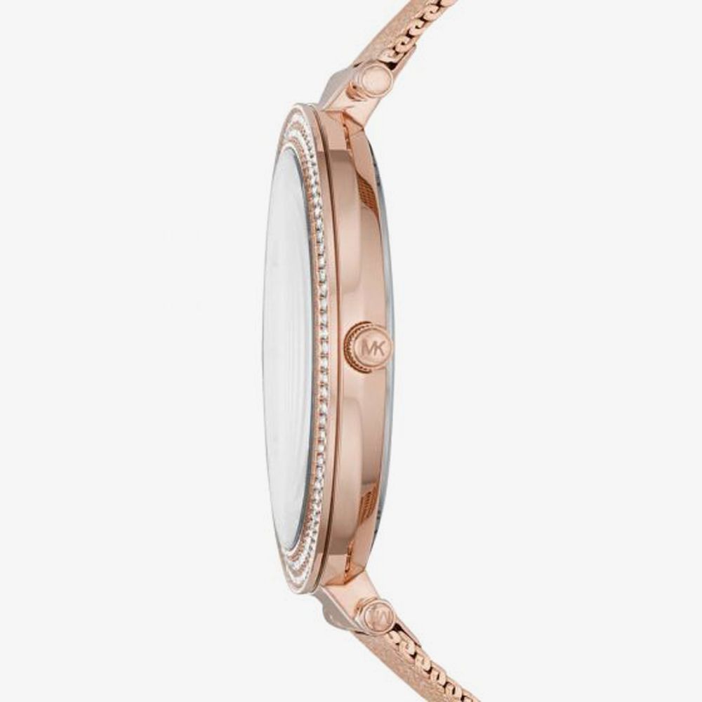 Add a sparkling finish to your everyday look with this stunning Darci timepiece. Crafted in stainless steel with a glistening rose gold plating, the piece features a contrasting mother of pearl dial set with rose gold hour batons and hands. The piece is finished with sparkling pave stones upon the bezel and an adjustable mesh strap with a fold over clasp fastening.
