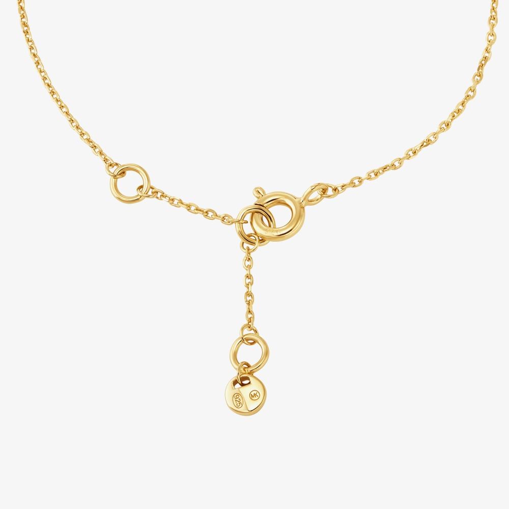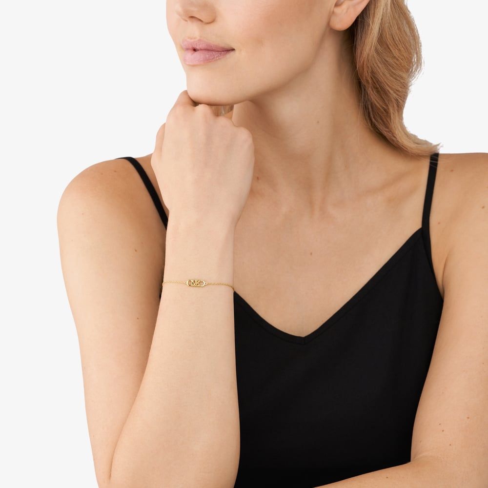 The Michael Kors MKC164100710 bracelet has been created in yellow gold-plated sterling silver and features an open oval link design displaying the memorable MK logo. This bracelet is completed with a delicate belcher chain design with an adjustable bolt ring fastening. The ideal bracelet for layering with other Michael Kors bracelets to create your own stacking look.
