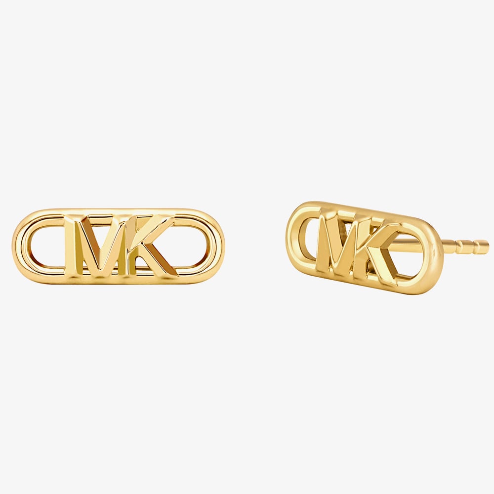 The Michael Kors MKC164300710 earrings have been created in yellow gold-plated sterling silver and features an oblong open oval link design displaying the memorable MK logo. These earrings have been completed on a post and butterfly back fastening. The ideal statement piece earrings to complete your look.