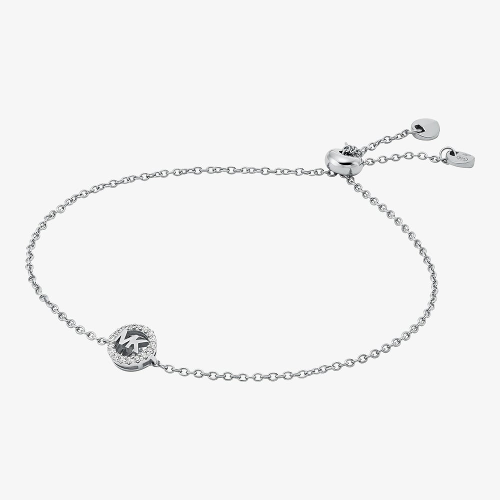 Elevate your everyday style with this elegant Michael Kors bracelet, crafted from sterling silver and featuring a shimmering cubic zirconia-set MK logo, a signature element of the collection. Finished with a sleek sliding toggle clasp for a custom fit, it’s a timeless piece that adds subtle sparkle to any look.