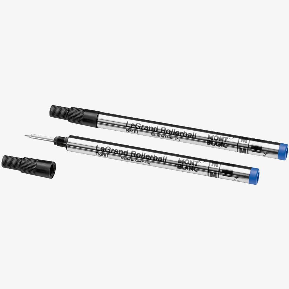 Montblanc 2 Medium Rollerball LeGrand pen refills in Royal Blue 128228. Suitable for all Montblanc Rollerball LeGrand Pens.