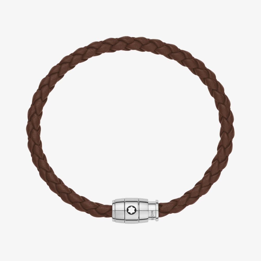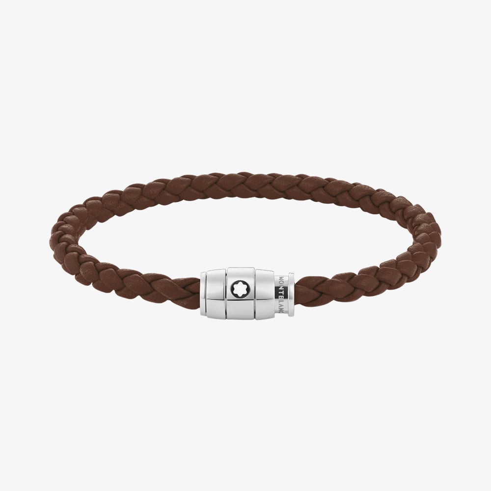 Timeless and versatile, this Montblanc bracelet is crafted from supple fauve brown leather, offering a warm and refined aesthetic. The polished stainless-steel clasp, engraved with the iconic Montblanc emblem, adds a sleek contrast to the rich leather tone. A subtle expression of elegance, this piece is ideal for everyday sophistication.