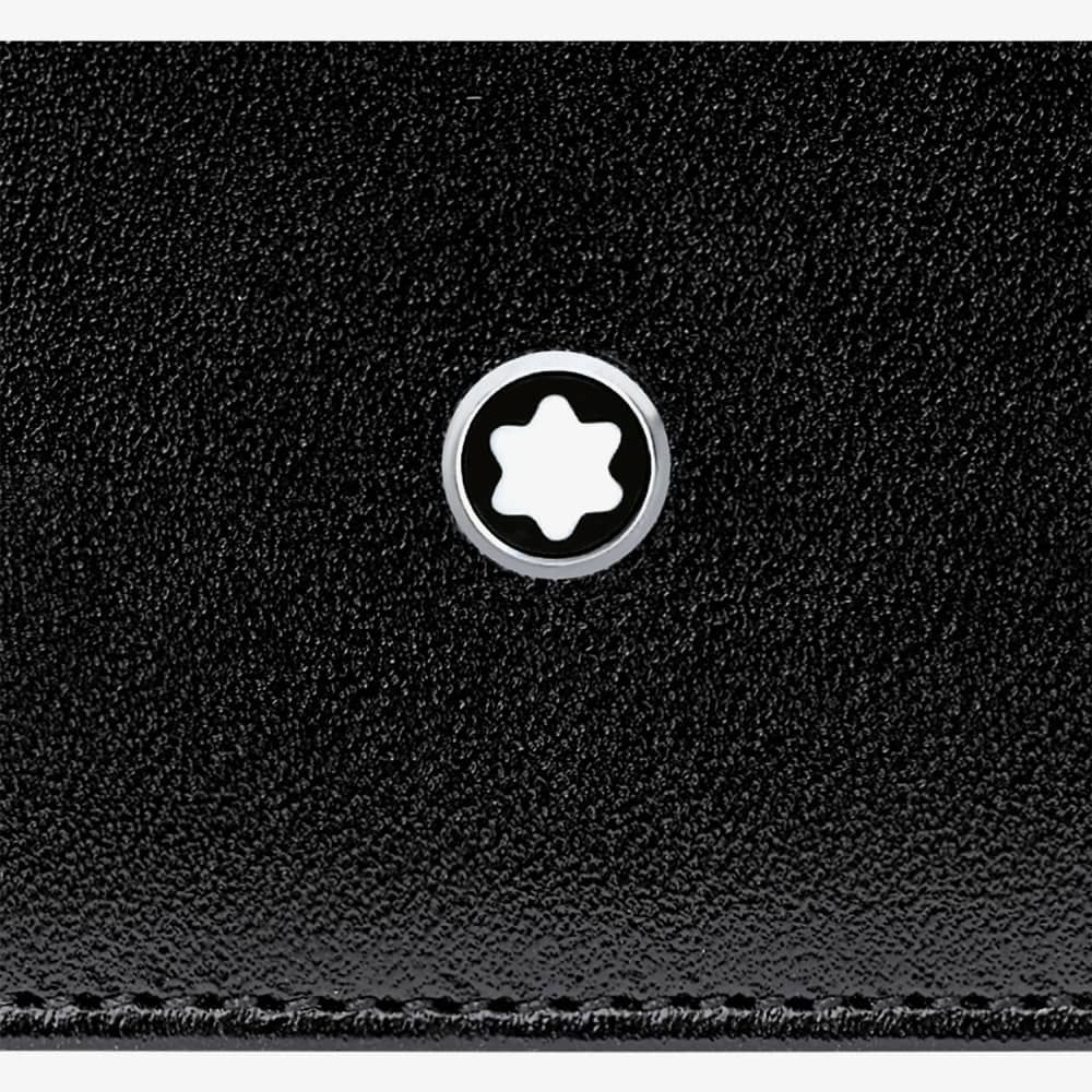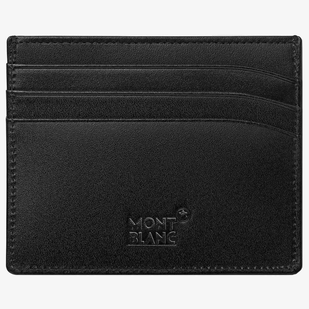 Montblanc Meisterstuck cardholder 106653. This cardholder is crafted from black full-grain calfskin leather and black jacquard lining. Offering 6 slots to keep payment essentials in one place and safe. A compact alternative to the conventional wallet. Dimensions: 100 x 5 x 80 mm.