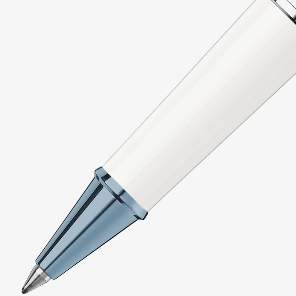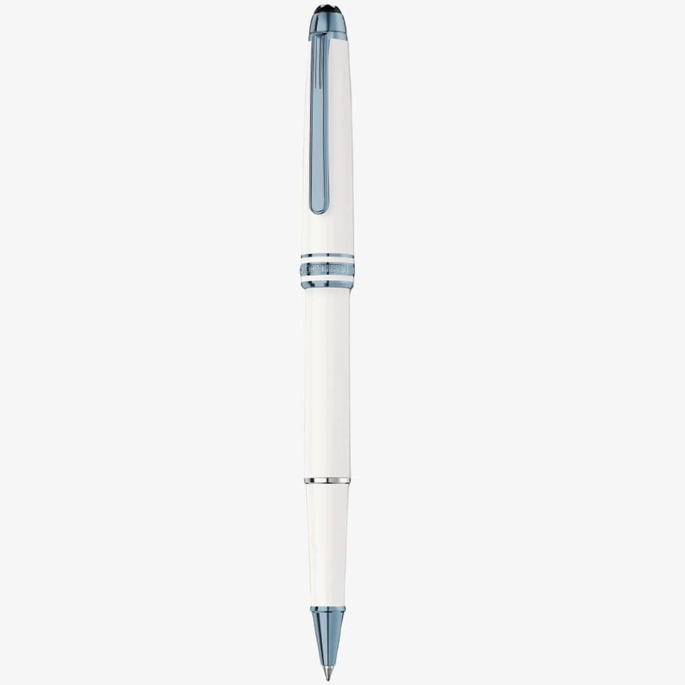 Montblanc Meisterstuck Glacier Classique White Rollerball Pen 129400 is delicately crafted from white coloured precious resin, inspired by the glaciers of the Mont Blanc mountains, representing the high quality of products and the attitude towards exploration and adventurous spirits. This elegant pen is highlighted with blue coloured PVD metal fitting and is finished with a rollerball tip for an easy glide when writing. Dimensions: 136.3 x 12.5mm. Weight: 20.4g.