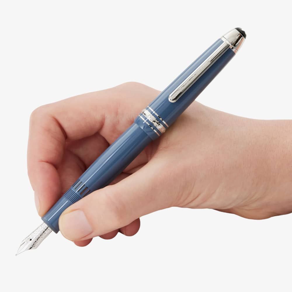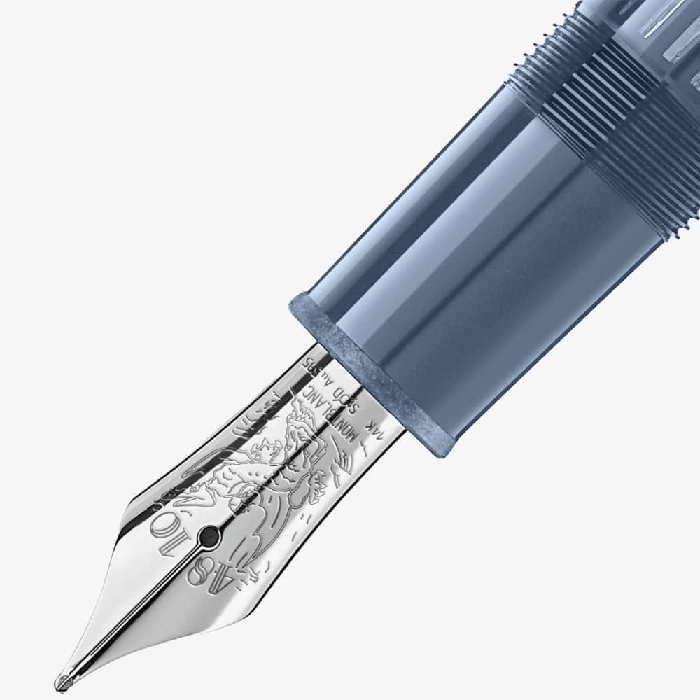 Montblanc Meisterstuck Glacier LeGrand Fountain Pen M 129393 is delicately crafted from bluey-grey precious resin, inspired by the glaciers of the Mont Blanc mountains, representing the high quality of products and the attitude towards exploration and adventurous spirits. This elegant pen is finished with a hand-crafted 14k gold nib with rhodium plating and the Mer de Glace 'dragon' lying on the top of the Mont Blanc Mountain. Nib Type: M. Dimensions: 140 x 13.7mm. Weight: 30.23g.