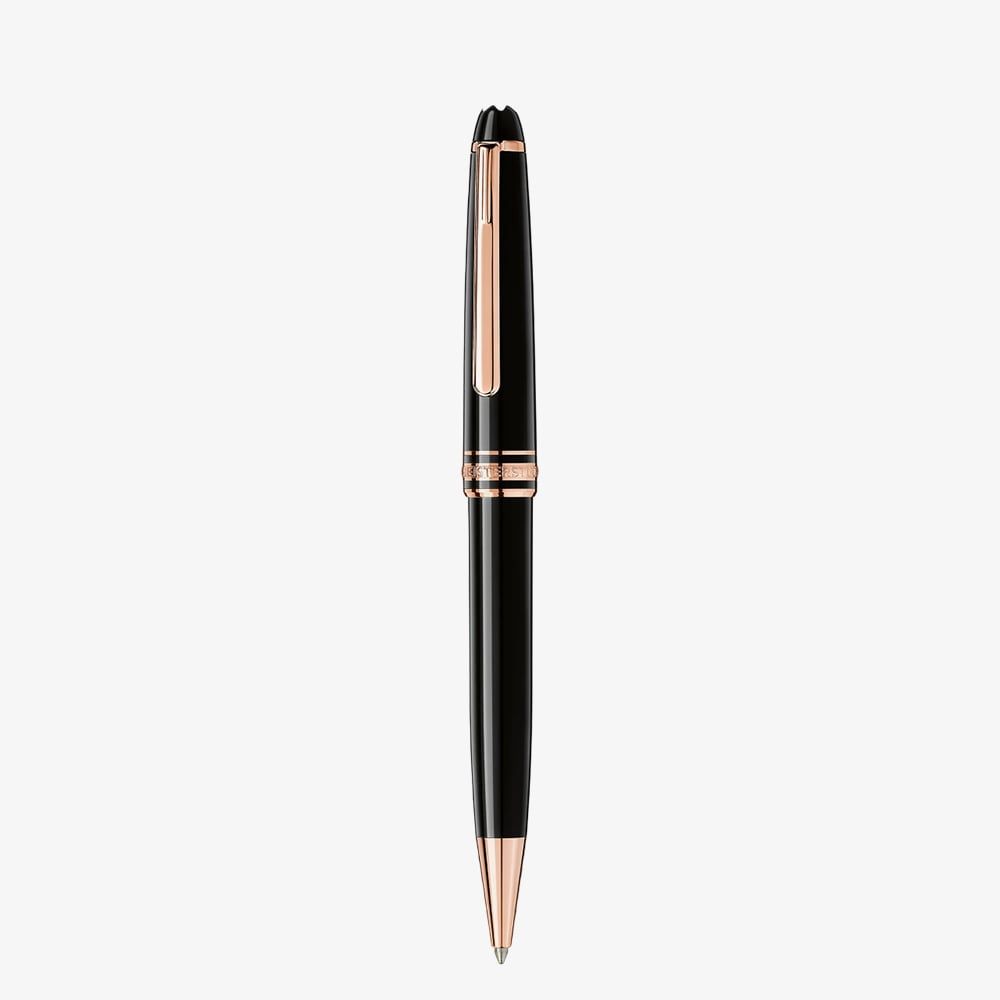 Montblanc Meisterstuck Classique Rose-Gold-coated collection is a design that writes history. Introduced in 1924, a word meaning “Masterpiece,” the Meisterstück has become the symbol for high quality luxury writing. The cap and barrel are crafted in black precious resin featuring the iconic white Montblanc emblem inlaid in the cap top.