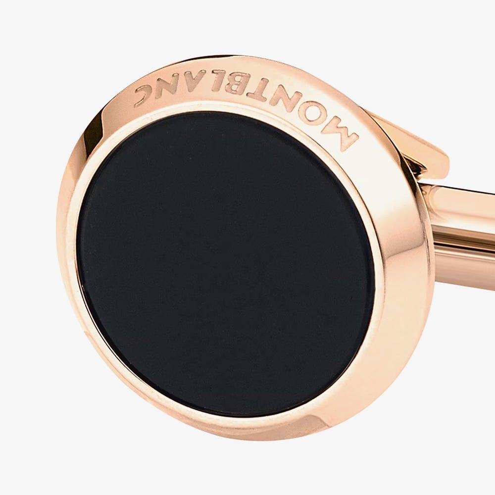 Montblanc Meisterstuck Round Rose Gold Tone Onyx Cufflinks 116663