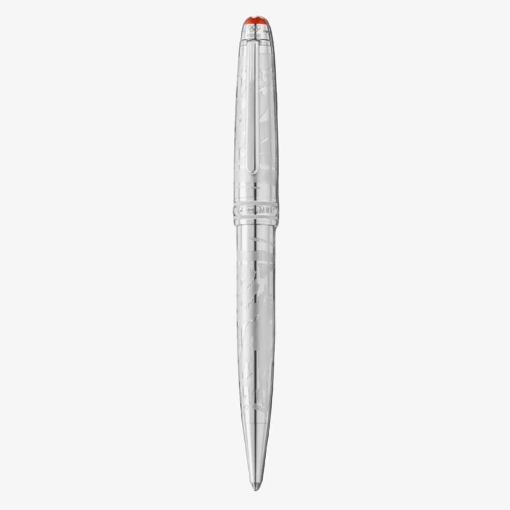 This Solitaire LeGrand ballpoint is crafted with a platinum-coated metal finish and features a beautiful mountain design etched into the pen itself, celebrating the Chamonix Winter Games. Like the others in the collection, the cap ring showcases an engraved depiction of the Olympic rings. This collectible piece continues the legacy of the Olympic Games and Montblanc’s rich history, entwined with this historic institution.