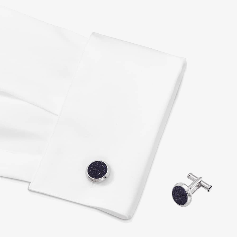 These handsome looking mens cufflinks feature an almost galaxy style effect with a bunch of small dots (like stars) set into the blue background.