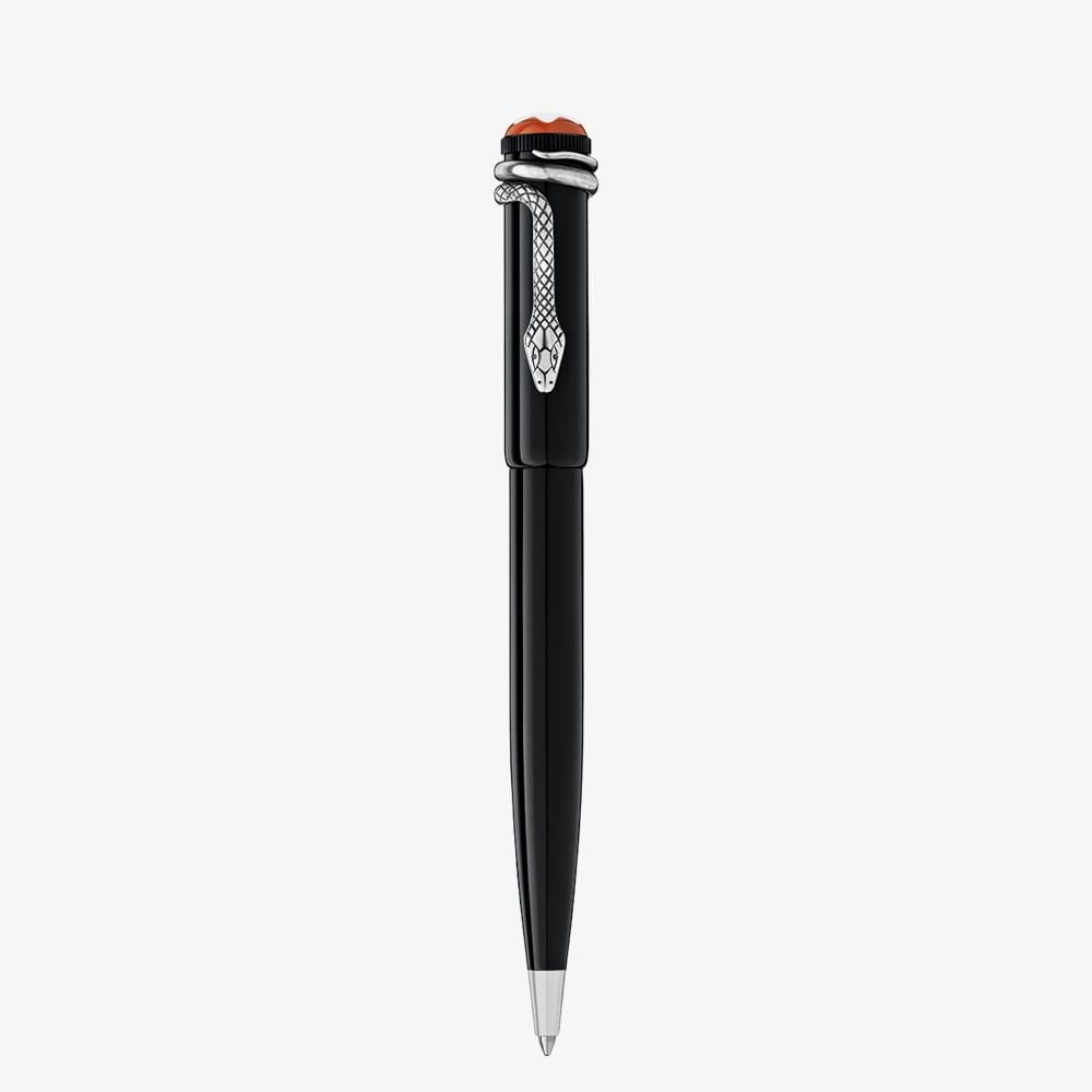 When it was developed in 1906, the ‘Rouge et Noir’ exclusive fountain pen was considered an outstanding technical achievement, ensuring simple operation without the need for dipping the nib into an inkwell. The Heritage Collection Rouge et Noir celebrates the 110 year old pioneering spirit of Montblanc and reinterprets the legendary writing instrument. This re-vamped model features a longer and slimmer silhouette as well as modern piston filler technology. Hosting a refined craftsmanship over generations, Montblanc also incorporated a vintage style Snake into the cap which delicately wraps around the piece. The clip is made by a stamping and winding process in a special alloy metal, and is aged by a unique galvanic and stripping process.