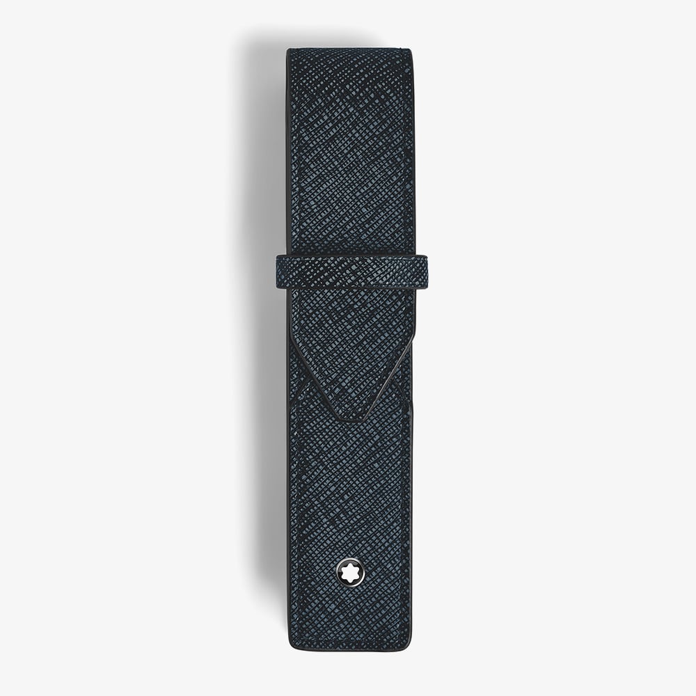 Crafted from elegant calf leather in a refined tweed blue, the Montblanc Sartorial Pen Pouch is designed to carry one writing instrument with style and protection. Its compact form features a secure fold-over flap with a push-through loop closure, blending practicality with understated sophistication. The iconic Montblanc emblem adds a distinguished touch, while the soft interior safeguards your pen from scratches and wear. A perfect companion for professionals and pen enthusiasts alike.